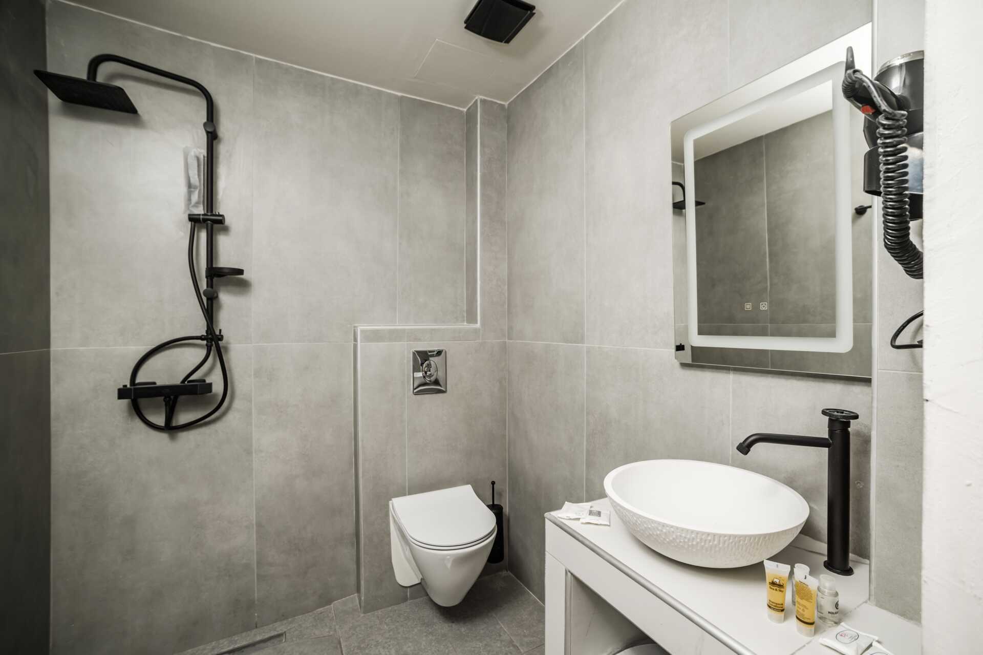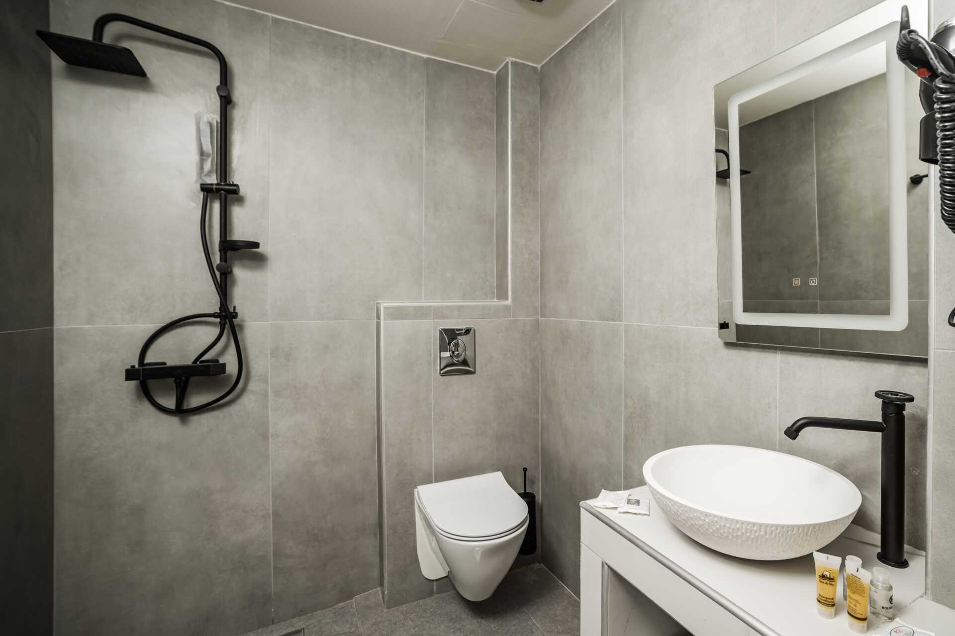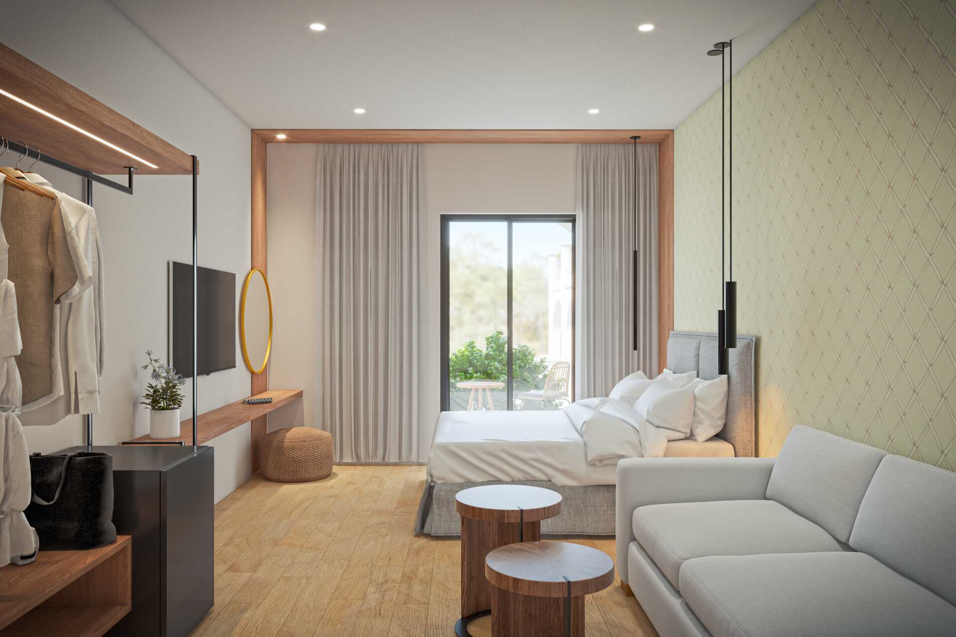 Juniorsuite med markbalkong. En dobbeltseng. Mulig med en ekstraseng i sovesofa. Wifi, luftkondisjonering og safe inkludert. Kjøleskap. Vannkoker samt kaffe og te. TV. Badekåper og tøfler. Hårføner. Dusj og wc. Rengjøring 7 ggr/uke.