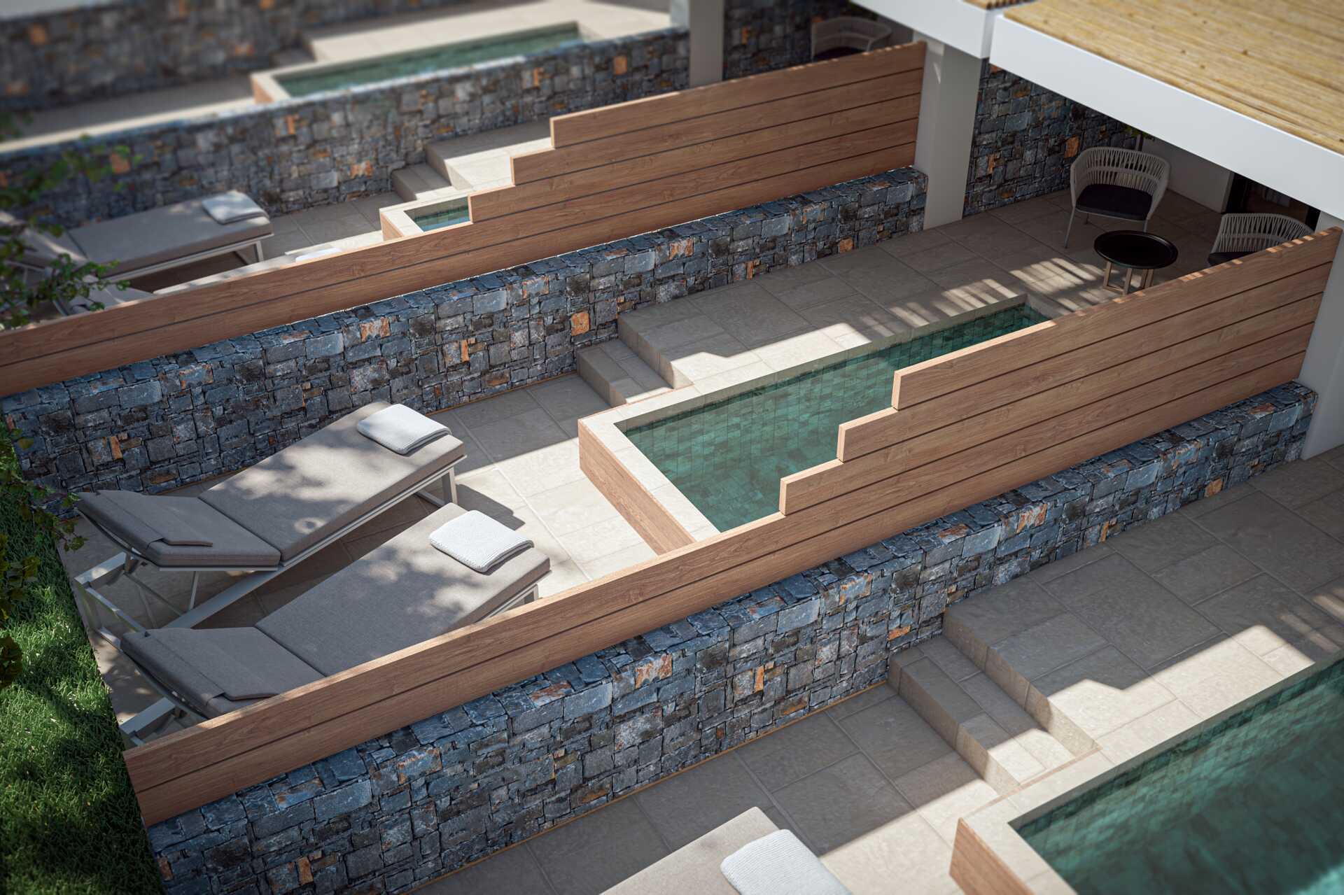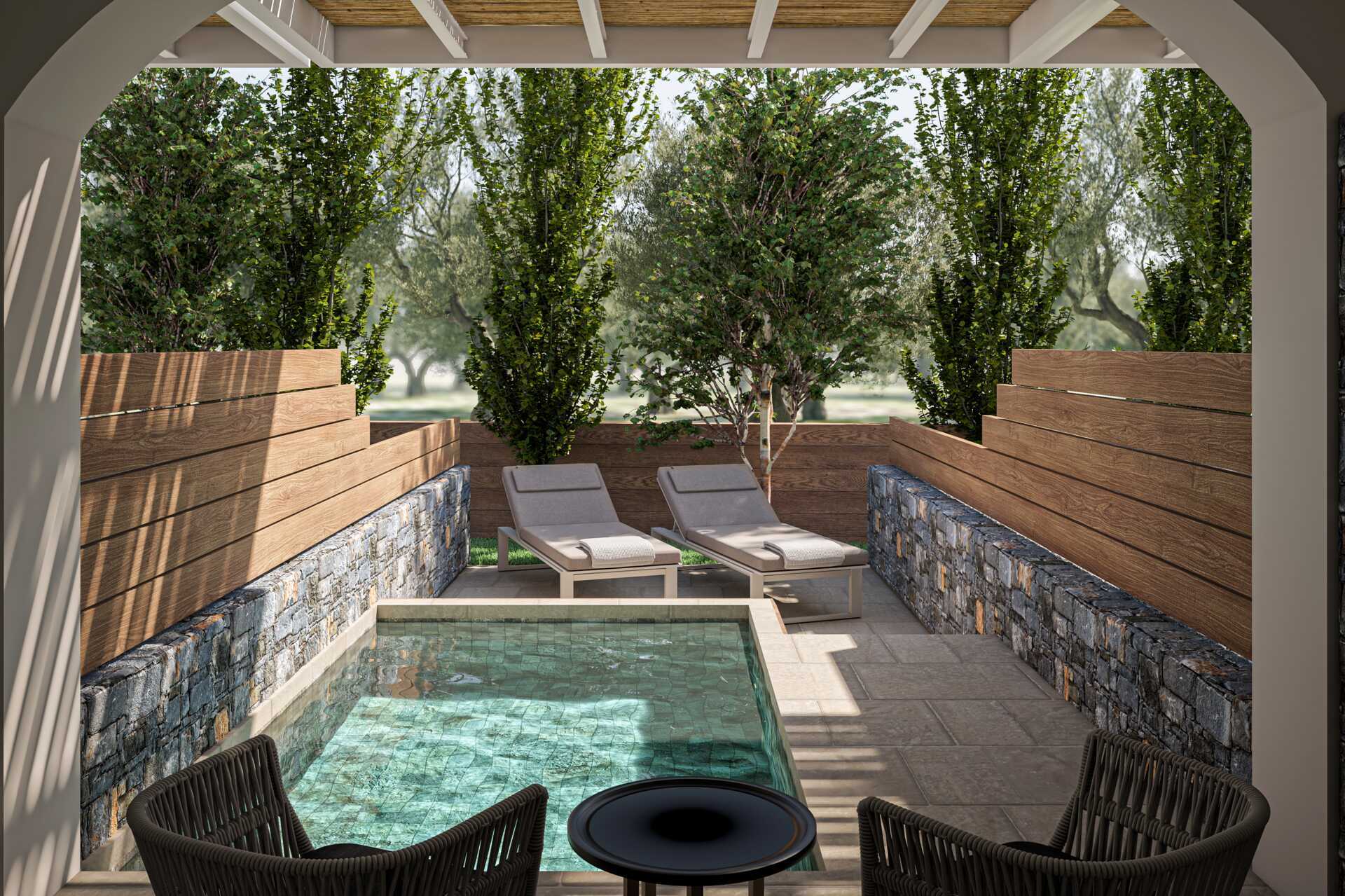 Superiorrom med eget basseng To solsenger og en parasoll ved bassenget. En dobbeltseng. Wifi, luftkondisjonering og safe inkludert. Kjøleskap. Vannkoker samt kaffe og te. TV. Badekåper og tøfler. Hårføner. Dusj og wc. Rengjøring 7 ggr/uke.