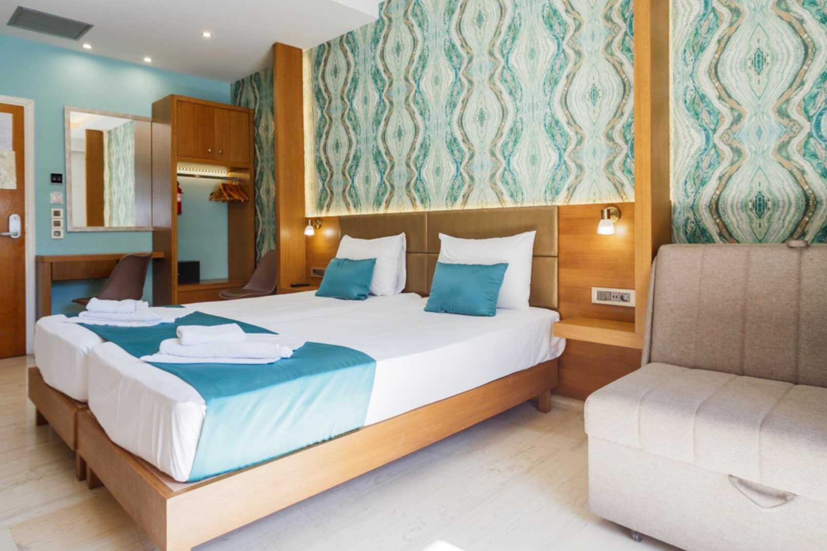 Toromsleilighet med balkong, noen med bassengutsikt. Et soverom og en stue med minikjøkken. To enkeltsenger. Mulig med en ekstraseng i enkeltseng. Minikjøkken med mikrobølgeovn, vannkoker, kjøleskap, brødrister og enkelt kjøkkenutstyr. Wifi, safe og luftkondisjonering inkludert. Luftkondisjoneringen er sentralstyrt og slås på ved behov i perioden 12.5-29.9. TV. Hårføner. Dusj og wc. Rengjøring 6 ggr/uke.
