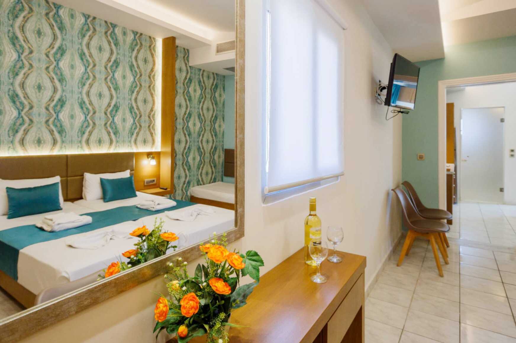 Toromsleilighet med balkong. Noen med utsikt til bassenget. To enkeltsenger. Mulig med en ekstraseng i enkeltseng. Wifi, safe og luftkondisjonering inkludert. Luftkondisjoneringen er sentralstyrt og slås på ved behov i perioden 12.5-29.9. Minikjøkken med mikrobølgeovn, vannkoker, kjøleskap, brødrister og enkelt kjøkkenutstyr. TV. Hårføner. Bad med dusj og wc. Rengjøring 6 ggr/uke.