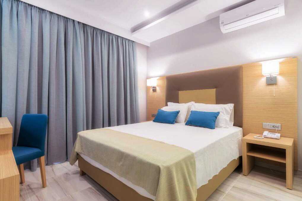 Dobbeltrom med balkong eller terrasse med utsikt over bassenget. En dobbeltseng eller to enkeltsenger. Wifi, luftkondisjonering og safe inkludert. Kjøleskap. TV. Badekåper og tøfler. Hårføner. Dusj eller badekar samt wc. Rengjøring 7 ggr/uke.