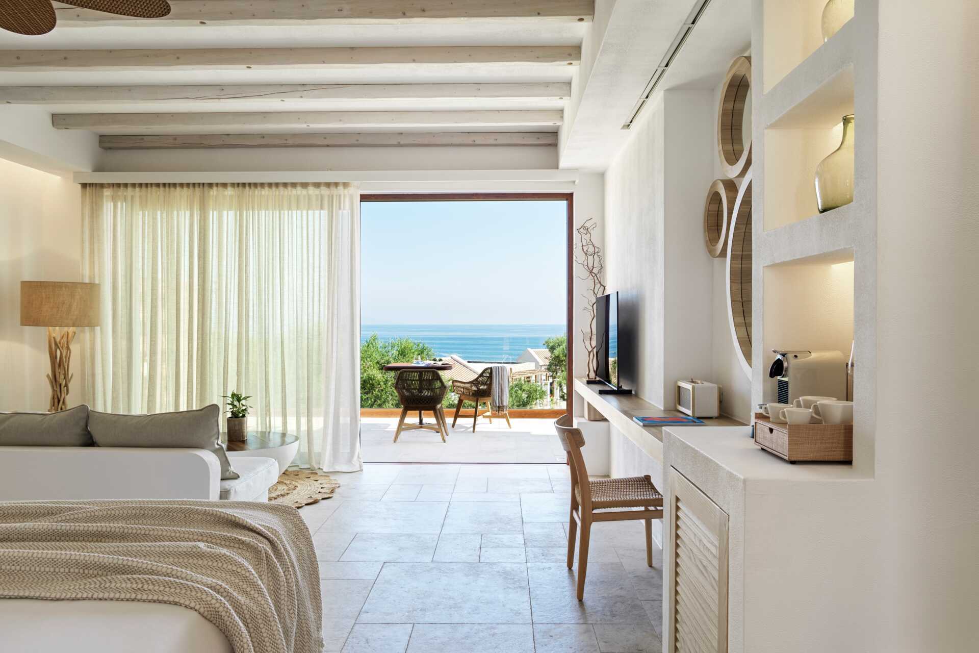 Deluxesuite med balkong eller terrasse, noen med havutsikt. En dobbeltseng. Mulig med en ekstraseng i sovesofa. Wifi, luftkondisjonering og safe inkludert. Minibar. Vannkoker samt kaffe og te. TV. Bluetooth høyttaler. Det er nivåforskjeller i suitene med ett trappetrinn. Badekåper og tøfler Hårføner. Bad med to servanter, badekar, separat dusj og wc. Rengjøring 7 ggr/uke.