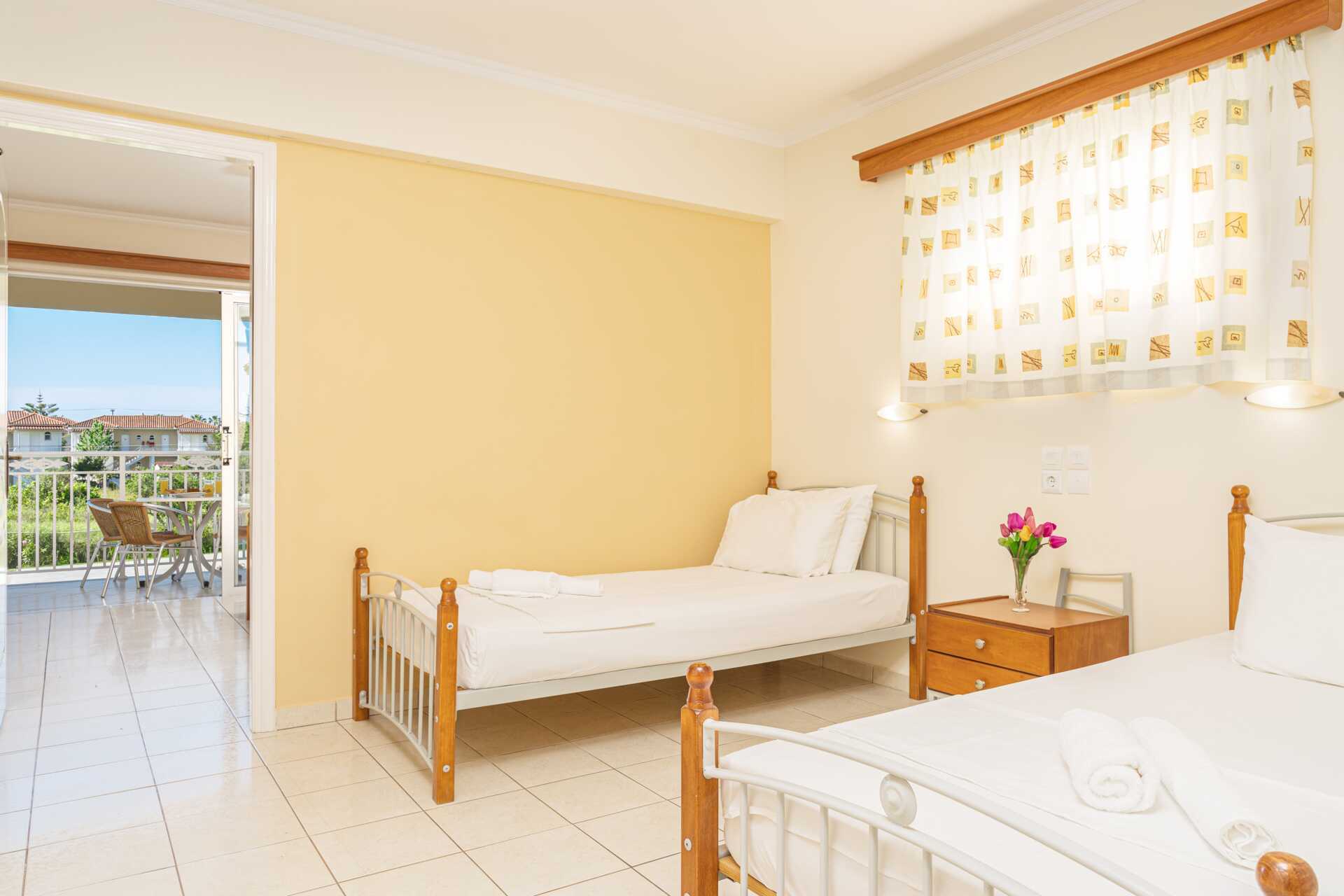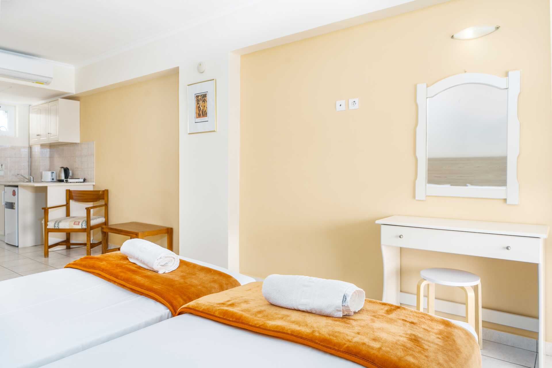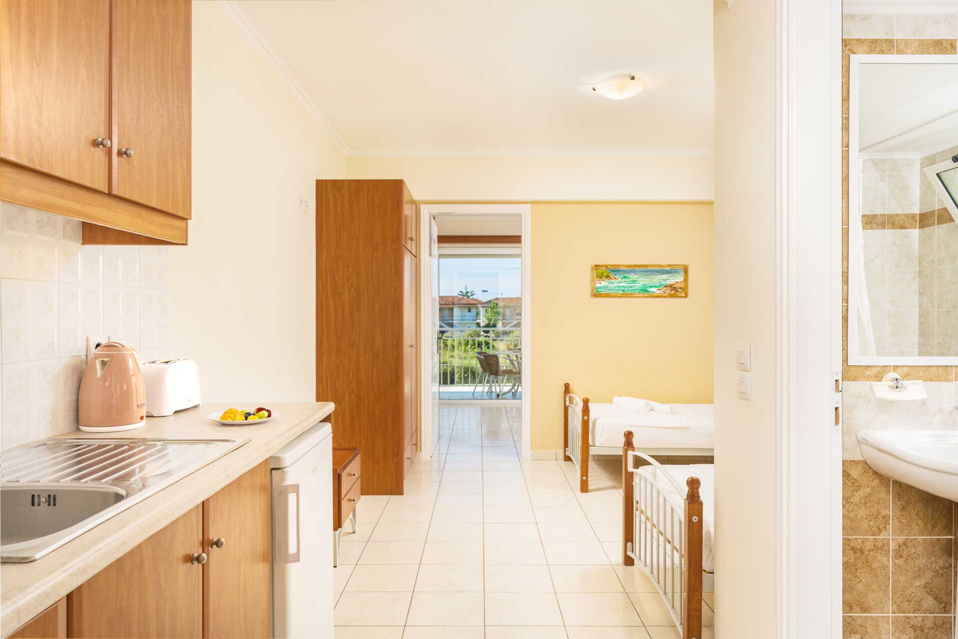 Ettromsleilighet med balkong eller markbalkong. Minikjøkken. To enkeltsenger. Mulig med ekstraseng i enkeltseng. Minikjøkken med kokeplater, kjøleskap, brødrister, vannkoker og enkelt kjøkkenutstyr. Wifi, luftkondisjonering og safe inkludert. Hårføner. Dusj og wc. Rengjøring 6 ggr/uke.