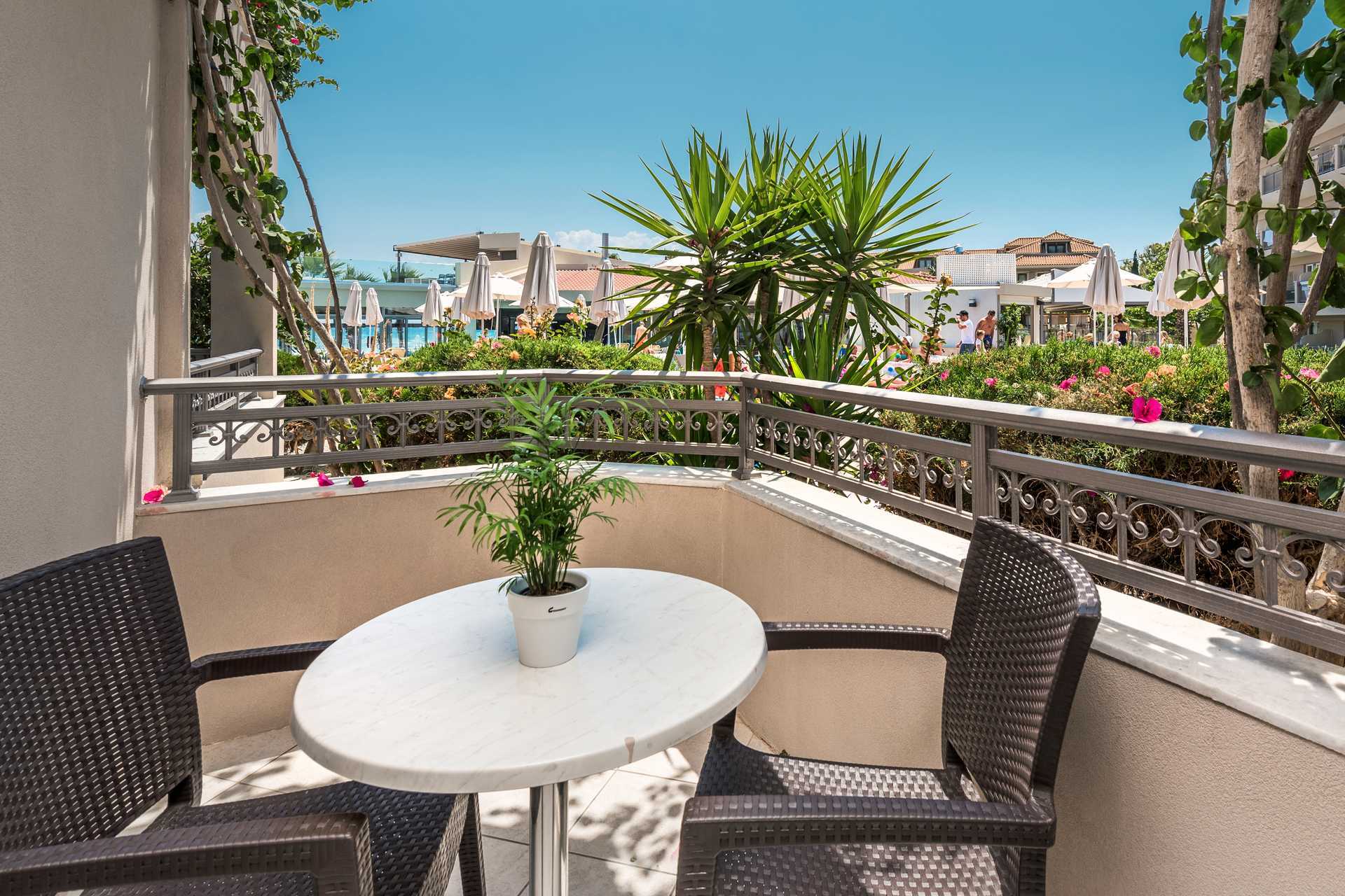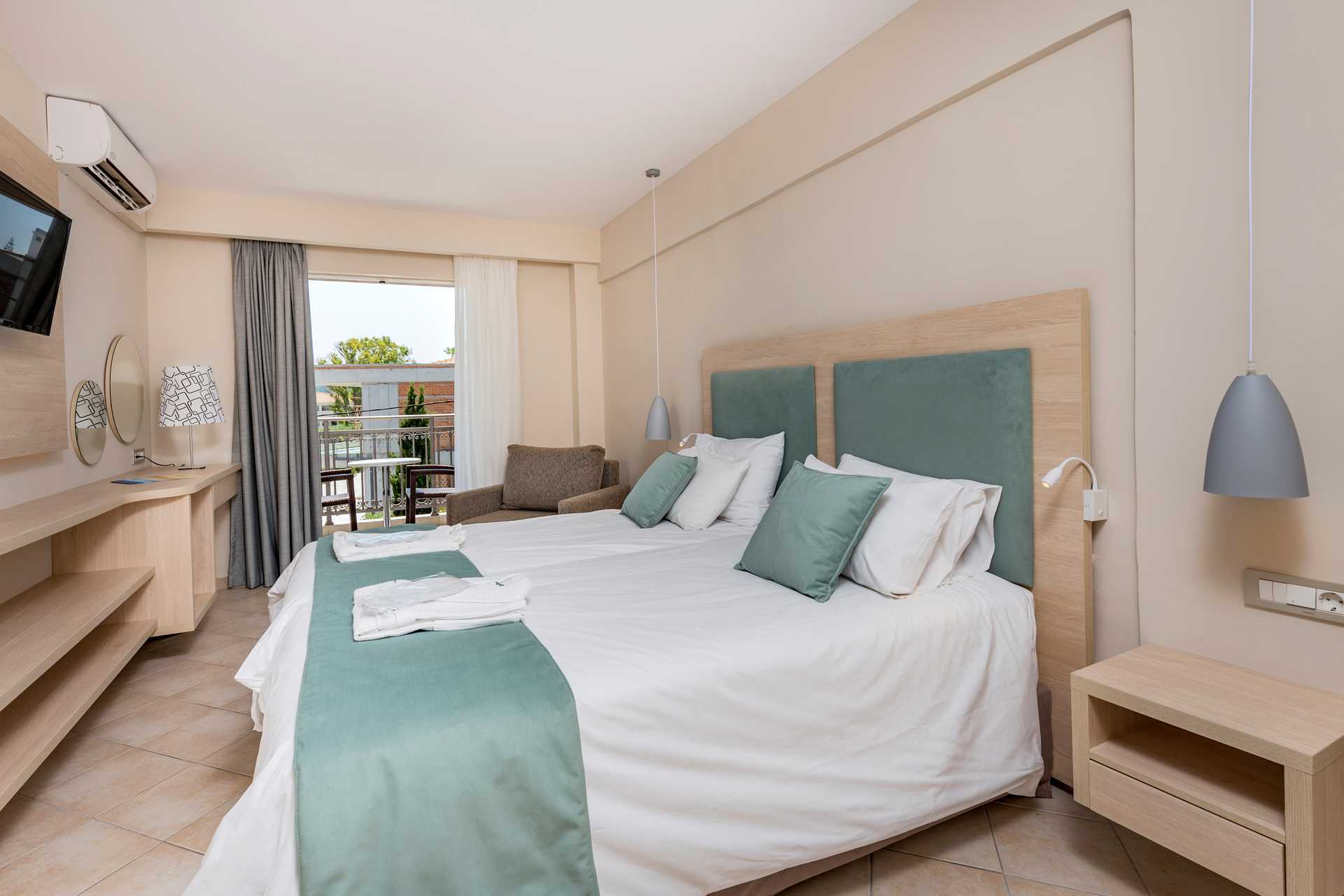 Dobbeltrom med balkong eller markbalkong. Noen av rommene har utsikt over bassenget, mens andre har balkong med begrenset havutsikt. To enkeltsenger. Mulig med ekstraseng i oppredbar lenestol. Kjøleskap. Vannkoker samt kaffe og te. Wifi, luftkondisjonering og safe inkludert. TV. Hårføner. Bad med dusj og wc. Rengjøring 6 ggr/uke.