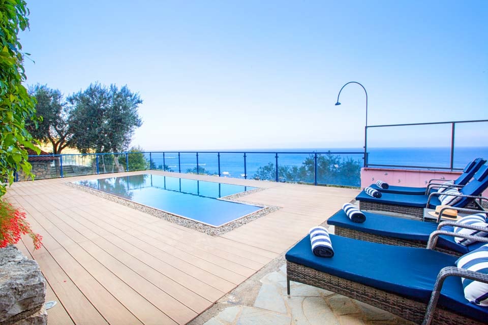 Nyt middelhavssolen mens du slapper av i villaens glitrende basseng, komplett med en hydromassasjedel for den ultimate avslapningen. Se ut over det glitrende havet og la de rolige omgivelsene smelte bort bekymringene dine.