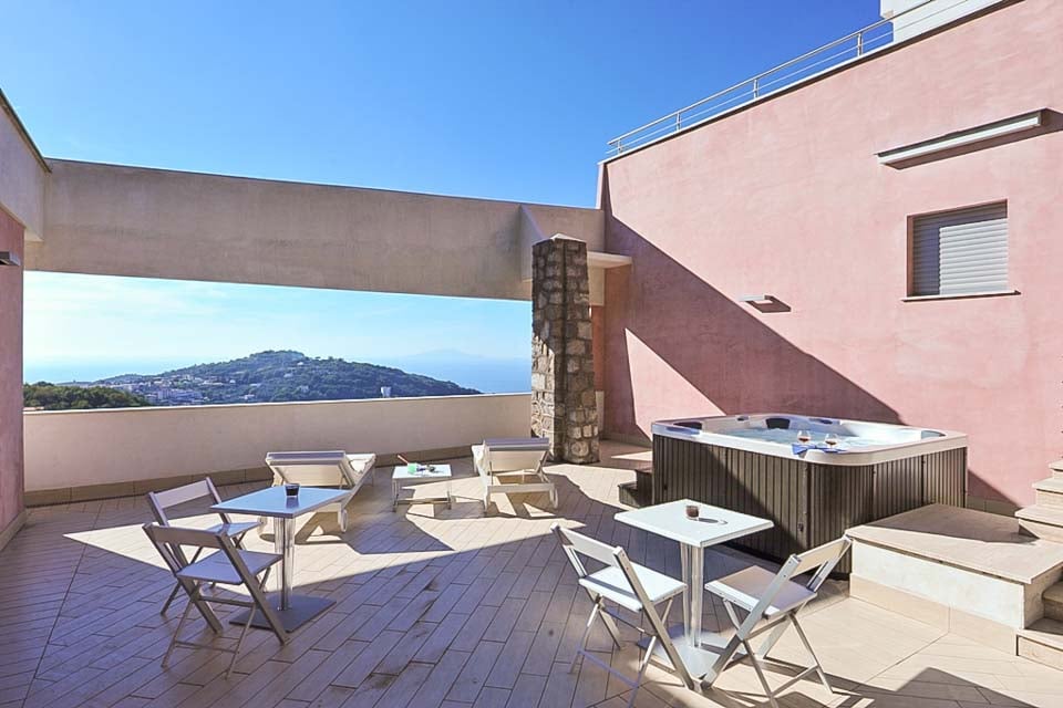 Dobbel, dobbeltseng, klimaanlegg, TV med lokale kanaler, balkong, komfortable sitteplasser, komfortabel sittegruppe, havutsikt