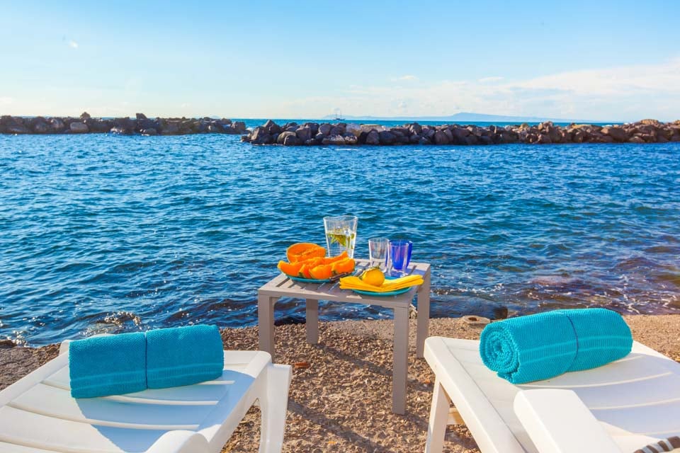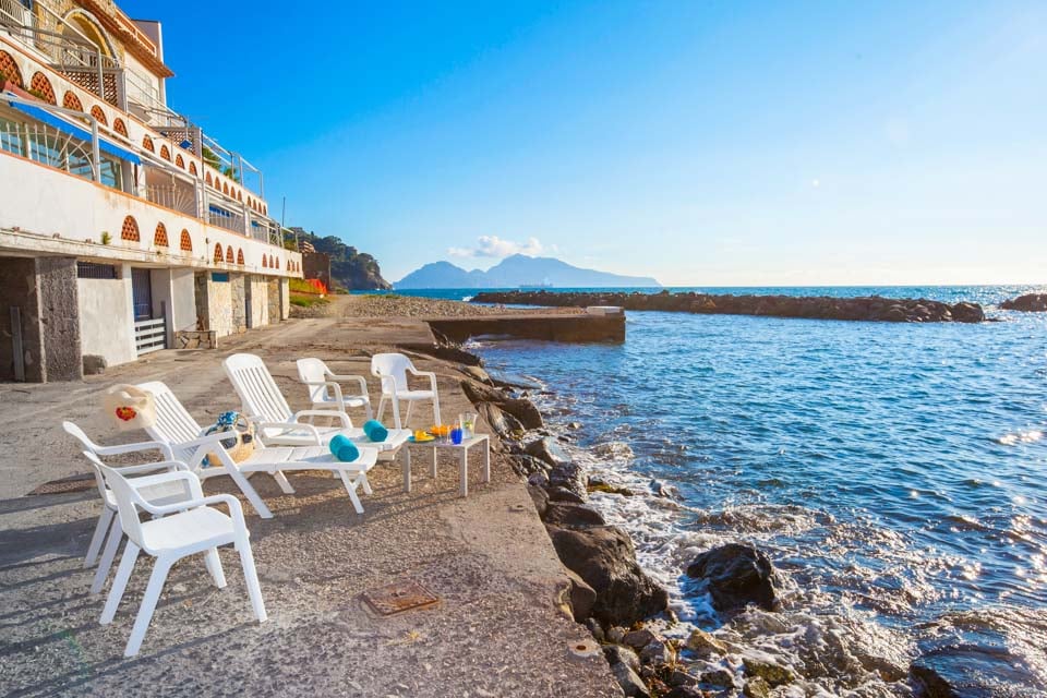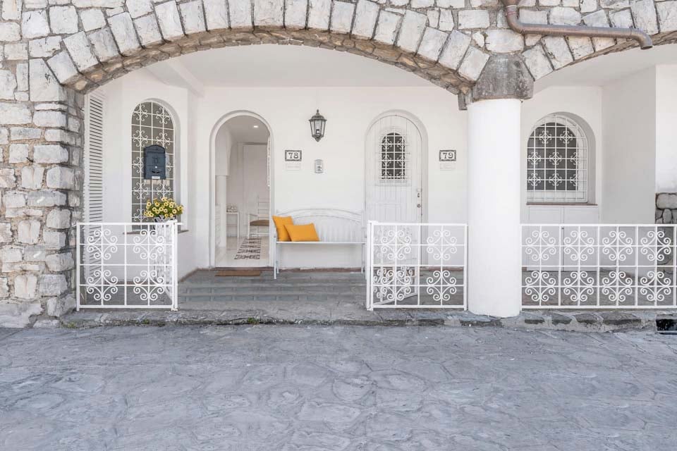 Fra underetasjen kan du gå direkte ut på den steinete strandpromenaden, noe som gir deg umiddelbar tilgang til kystlinjen og dens naturlige omgivelser. Innvendig er rommene friske og ryddige, med smart-TV-er og klimaanlegg som gir komfort i hele hjemmet.