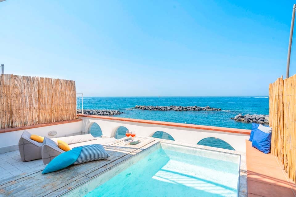 Utenfor finner du et kompakt stupebasseng hvor du kan kjøle deg ned mens du nyter utsikten over det åpne havet. Terrassene og nivåene i huset lar deg følge solen mens den beveger seg over kystlinjen, noe som skaper forskjellige steder å sitte og nyte naturen.