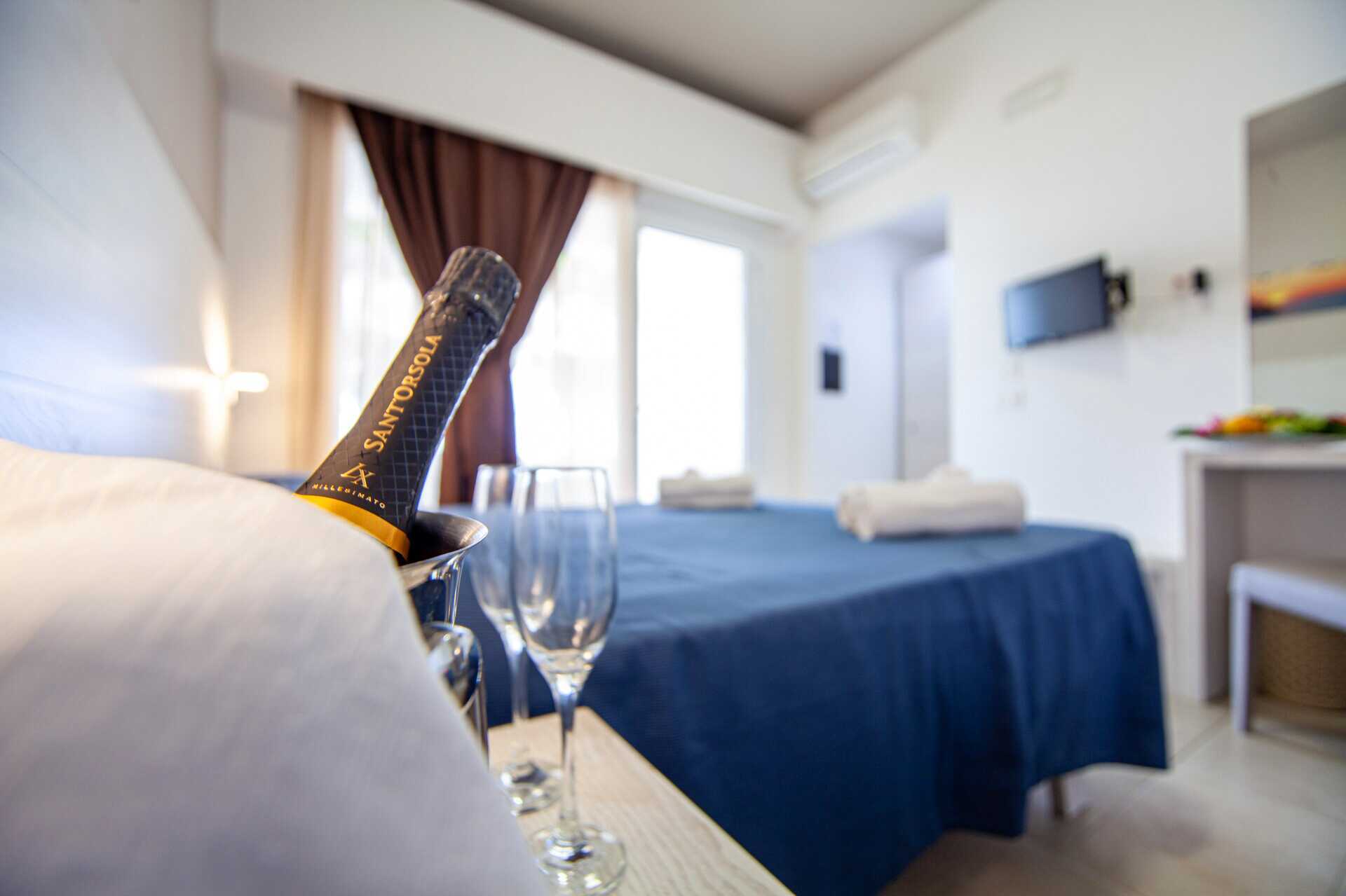 Superiorrom med balkong eller terrasse. En dobbeltseng eller to enkeltsenger. Wifi, luftkondisjonering og safe inkludert. Lite kjøleskap. TV med lokale kanaler. Hårføner. Bad med dusj og wc. Rengjøring 7 ggr/uke.
