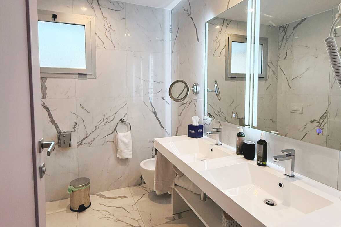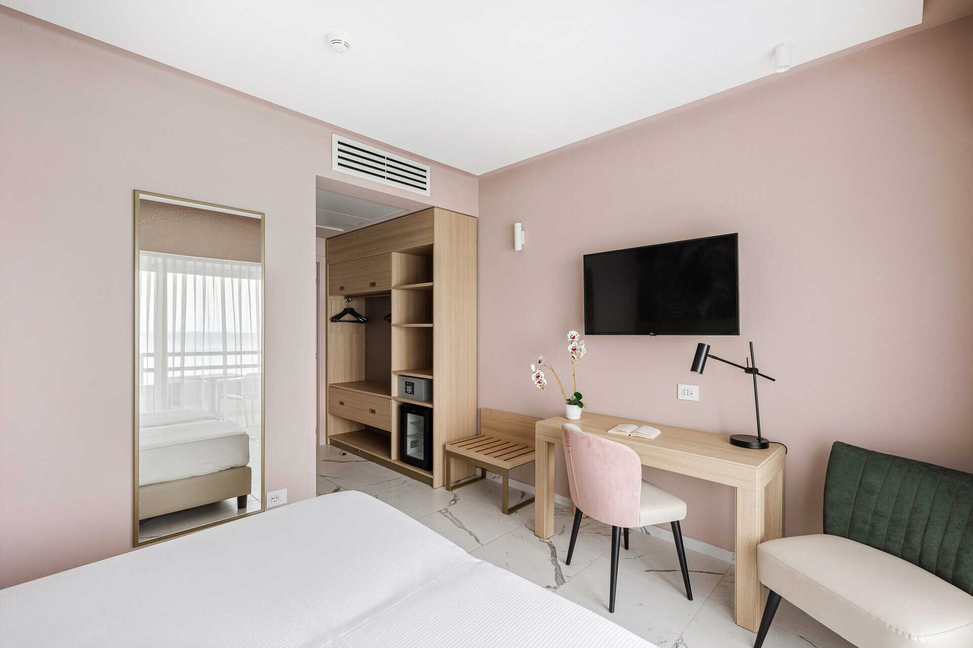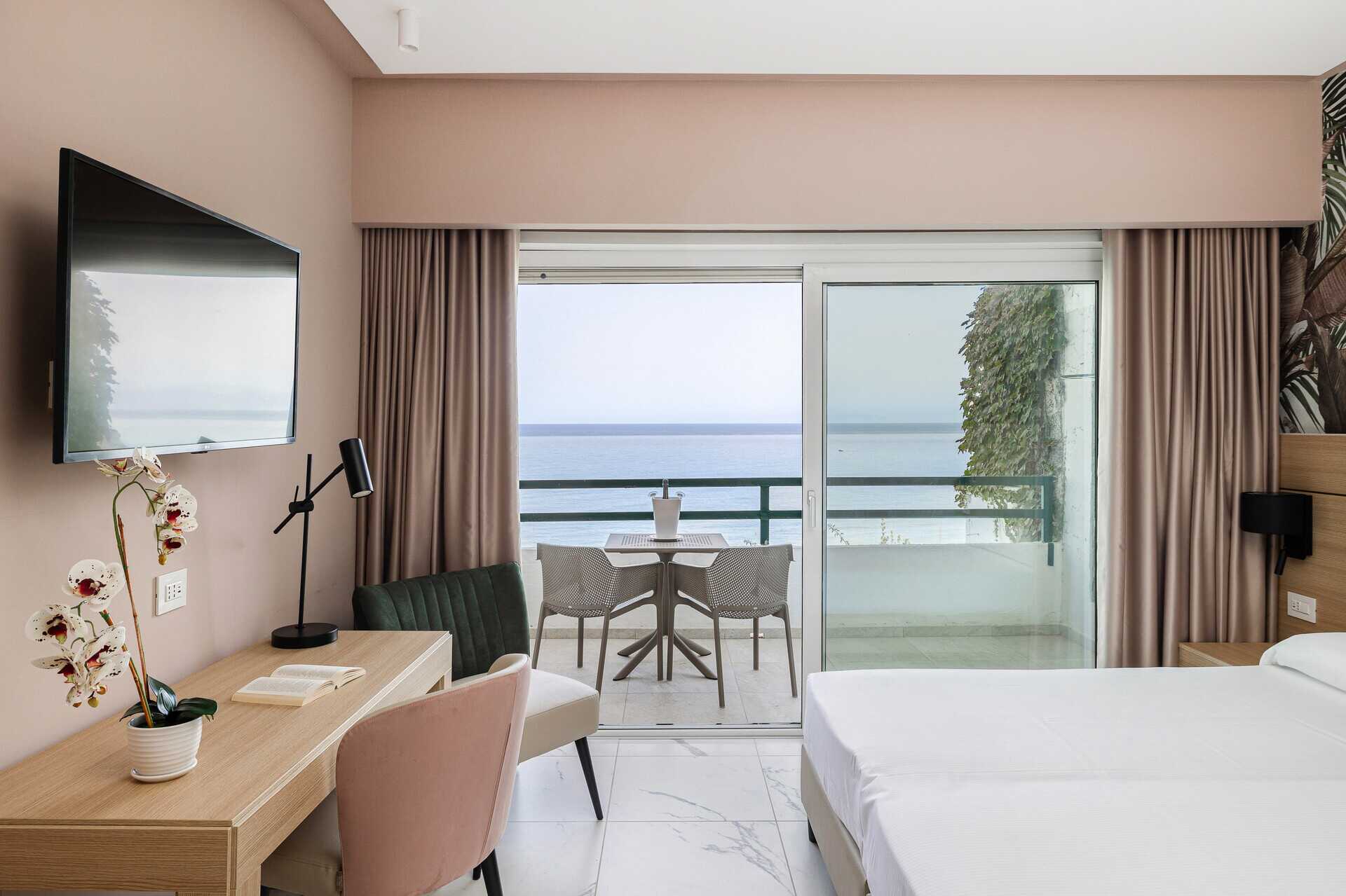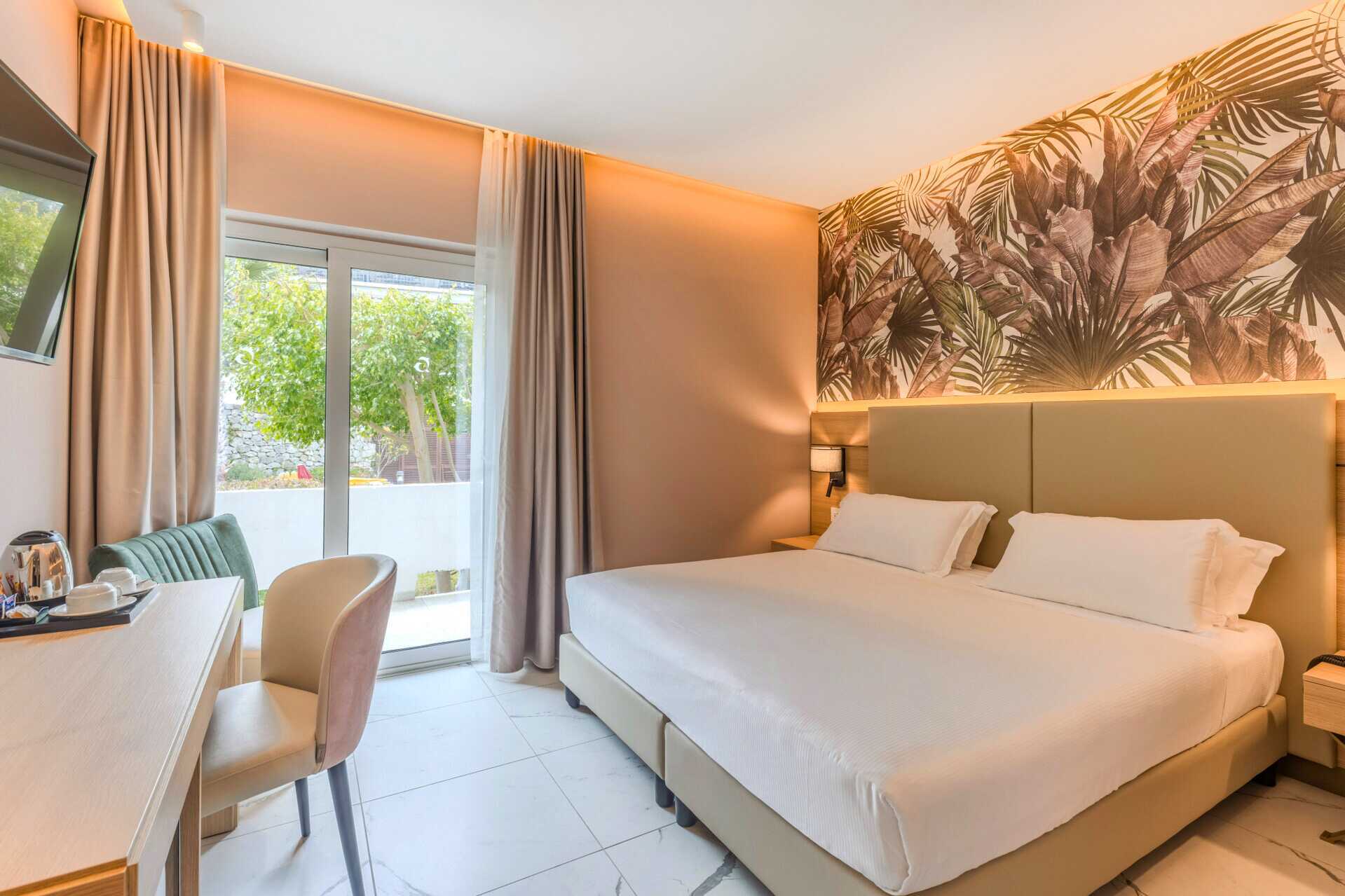 Dobbeltrom med balkong eller terrasse. En dobbeltseng eller to enkeltsenger. Mulig med ekstraseng. Wifi, luftkondisjonering og safe inkludert. Lite kjøleskap. TV. Hårføner. Bad med dusj og wc. Rengjøring 3 ggr/uke.
