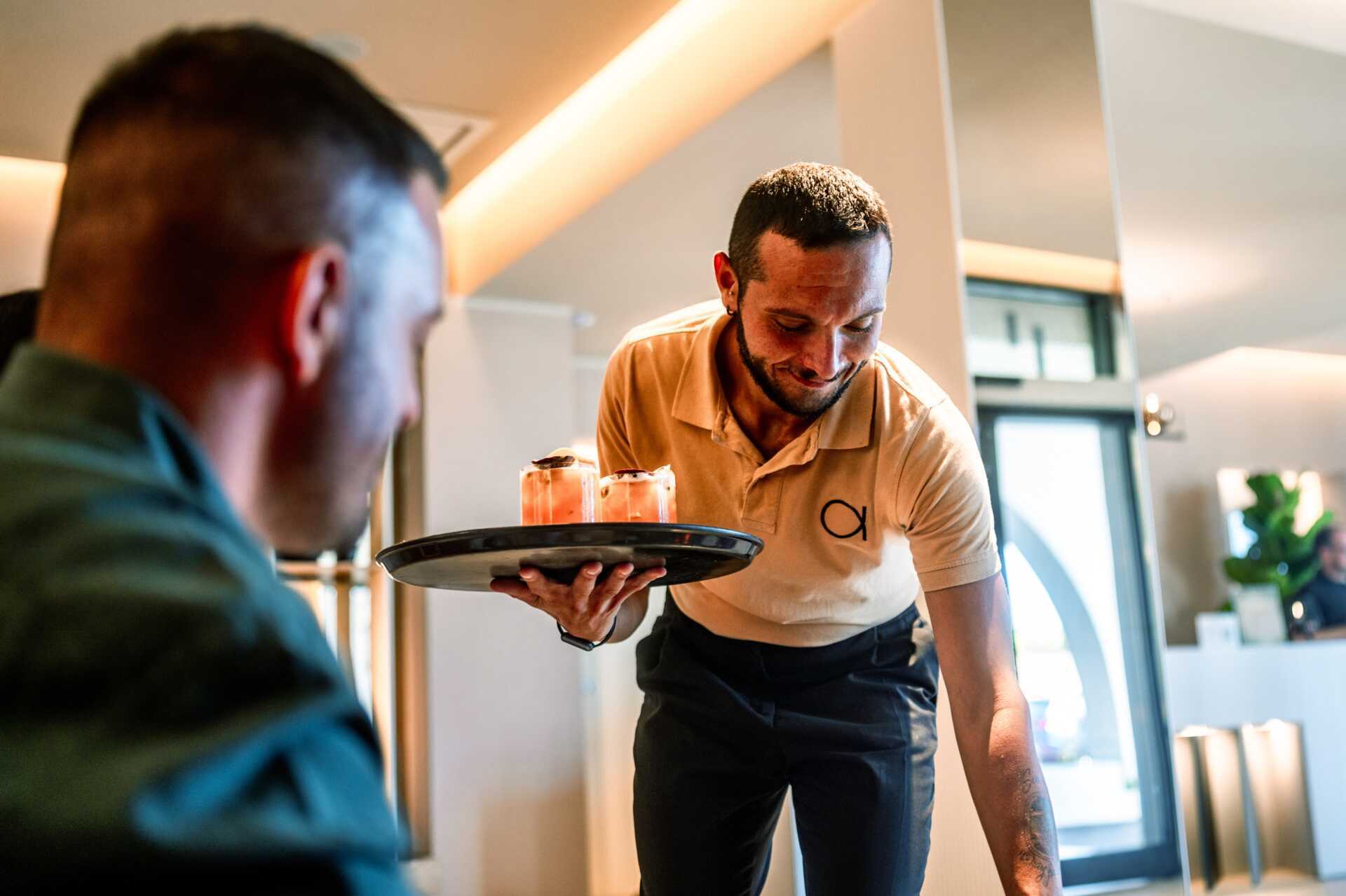 På ananea Tropea Yachting Resort, med sin perfekte beliggenhet ved marinaen, vil du være nær både stranden og det sjarmerende historiske sentrum. Det er en harmonisk atmosfære her hvor minimalistisk design og naturlige toner skaper et stilig helhetsinntrykk. Inspirert av klippene og havet i Tropea, er interiøret innredet i lyse, svale farger som gir en avslappende følelse fra første stund.