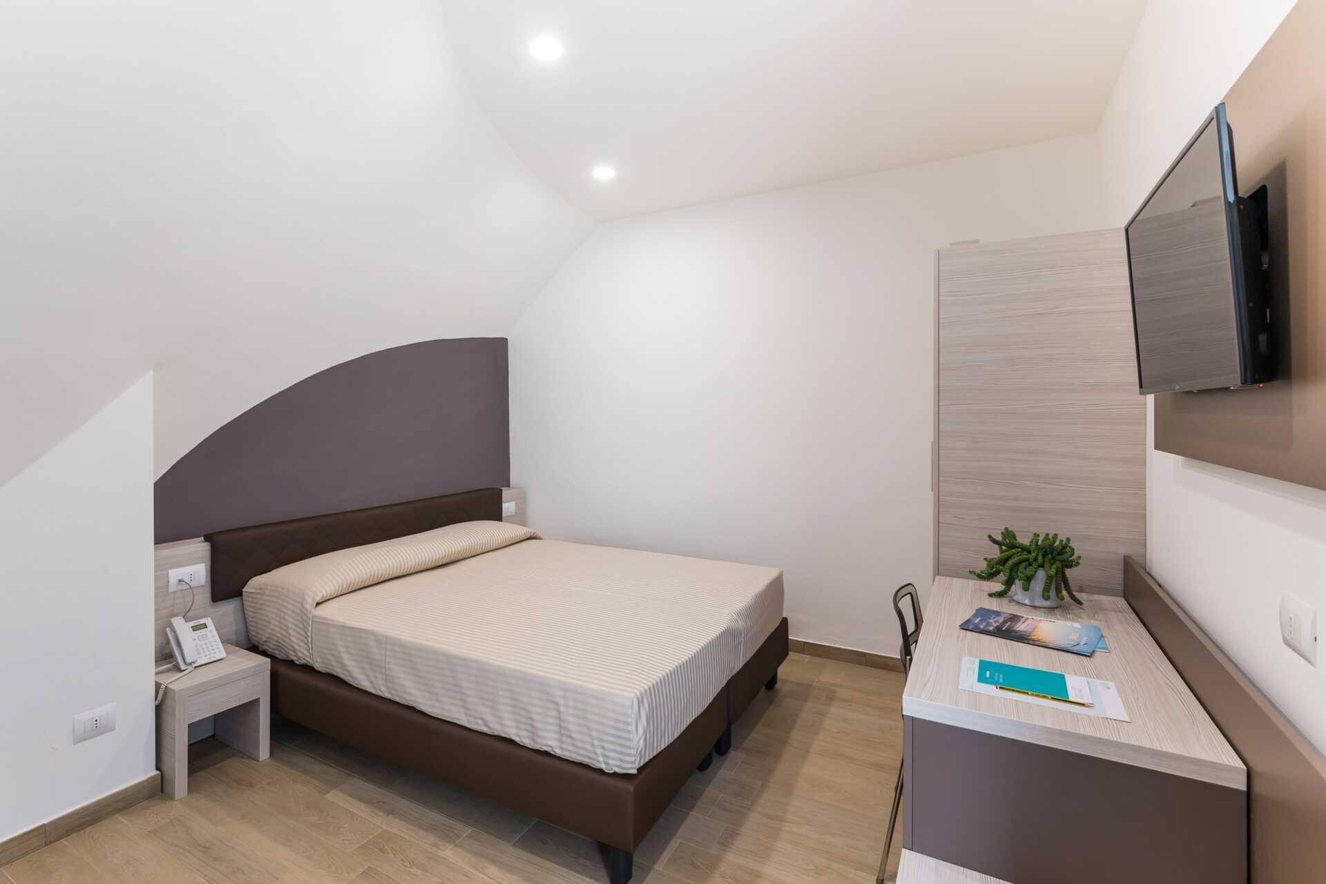 Dobbeltrom med markterrasse. En dobbeltseng og mulighet for en ekstraseng i sovesofa. Wifi, safe og luftkondisjonering inkludert. Minibar. TV. Hårføner. Dusj og wc. Rengjøring 5 ggr/uke.