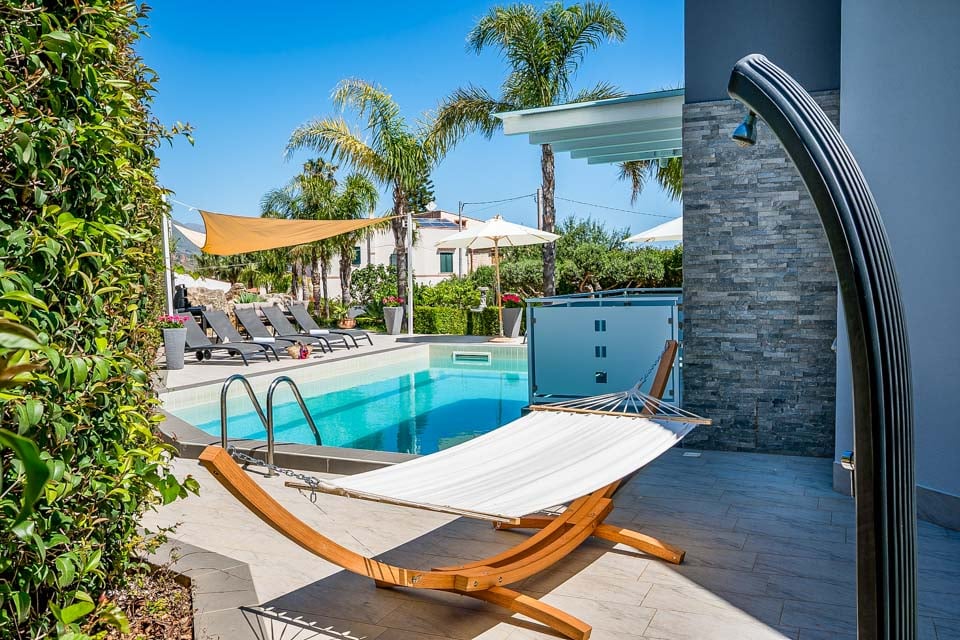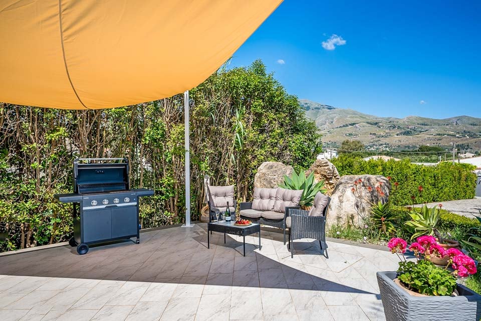 Gå ut for å nyte det private bassenget og gassgrillen, flott for avslappende kvelder under den sicilianske himmelen. Fra terrassen kan du nyte den vidstrakte fjellutsikten som innrammer villaen vakkert. En bil er viktig her, slik at du har friheten til å utforske kystlinjen, sjarmerende byer og skjulte perler i nærheten.