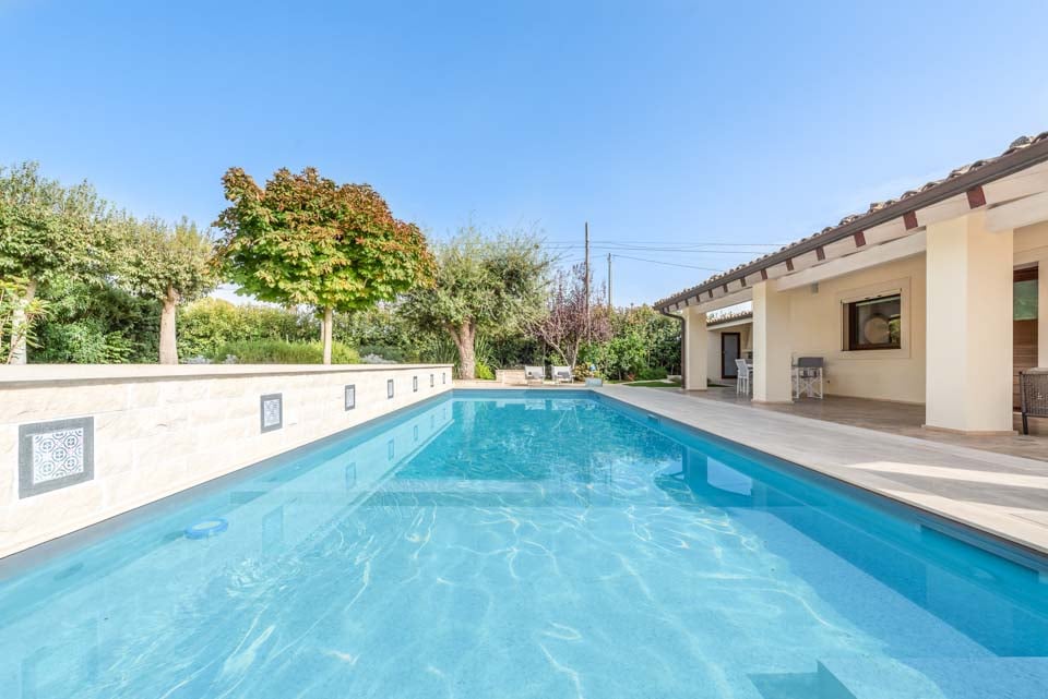 Innvendig har villaen en lys, åpen stue, hvor elegant design møter koselig komfort. Et fullt utstyrt kjøkken, en innbydende spiseplass og en avslappet stue gir alt du trenger for en bekymringsløs ferieopplevelse. Alle tre soverommene har eget bad, noe som sikrer privatliv og komfort for hver gjest. Vær oppmerksom på at ett av soverommene kun er tilgjengelig via en separat utvendig inngang, ideelt for ekstra privatliv eller et fredelig tilfluktssted.