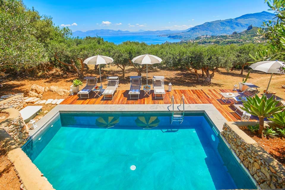 Villaen ligger midt i sin egen olivenlund langs den forrevne kystlinjen på nordvestlige Sicilia, og har en privilegert beliggenhet. Beskyttet mot kystvindene av majestetiske fjell i bakkant, byr den på et panoramautsikt over Castellammare del Golfos fortryllende bukt fra sitt vidstrakte område.