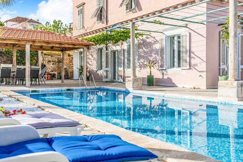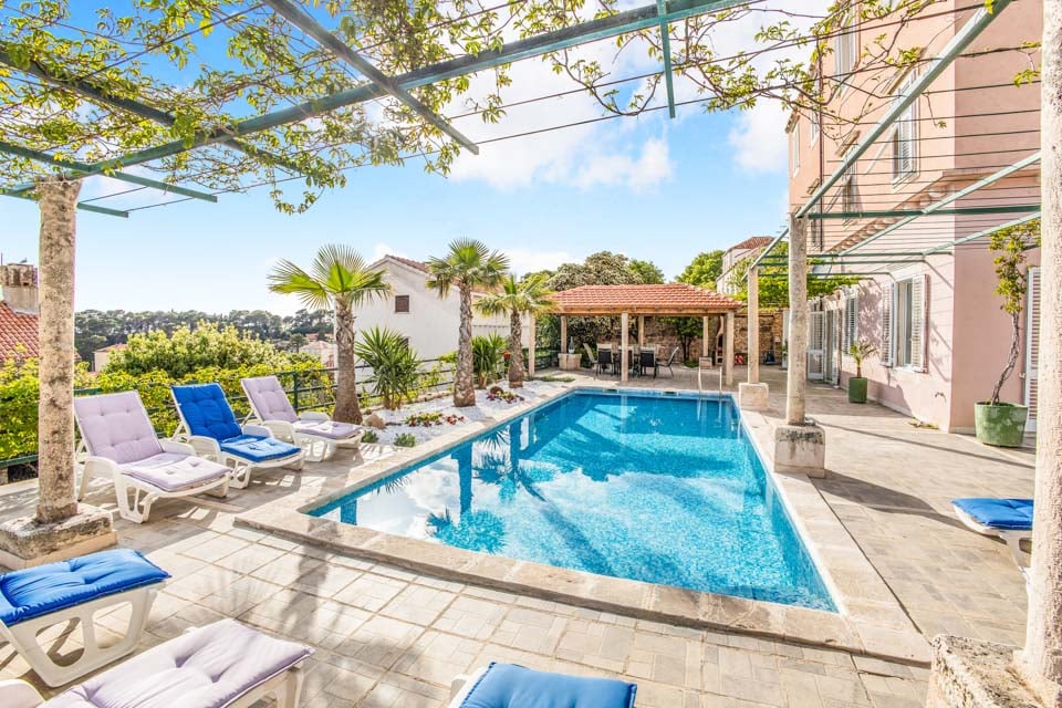 Uteplassen er like imponerende. Den romslige terrassen tilbyr god plass til soling, utendørs servering eller bare avslapning med et glass vin. Ta en forfriskende dukkert i det private bassenget, eller beundre utsikten over Dubrovniks terrakottatak og det glitrende Adriaterhavet.