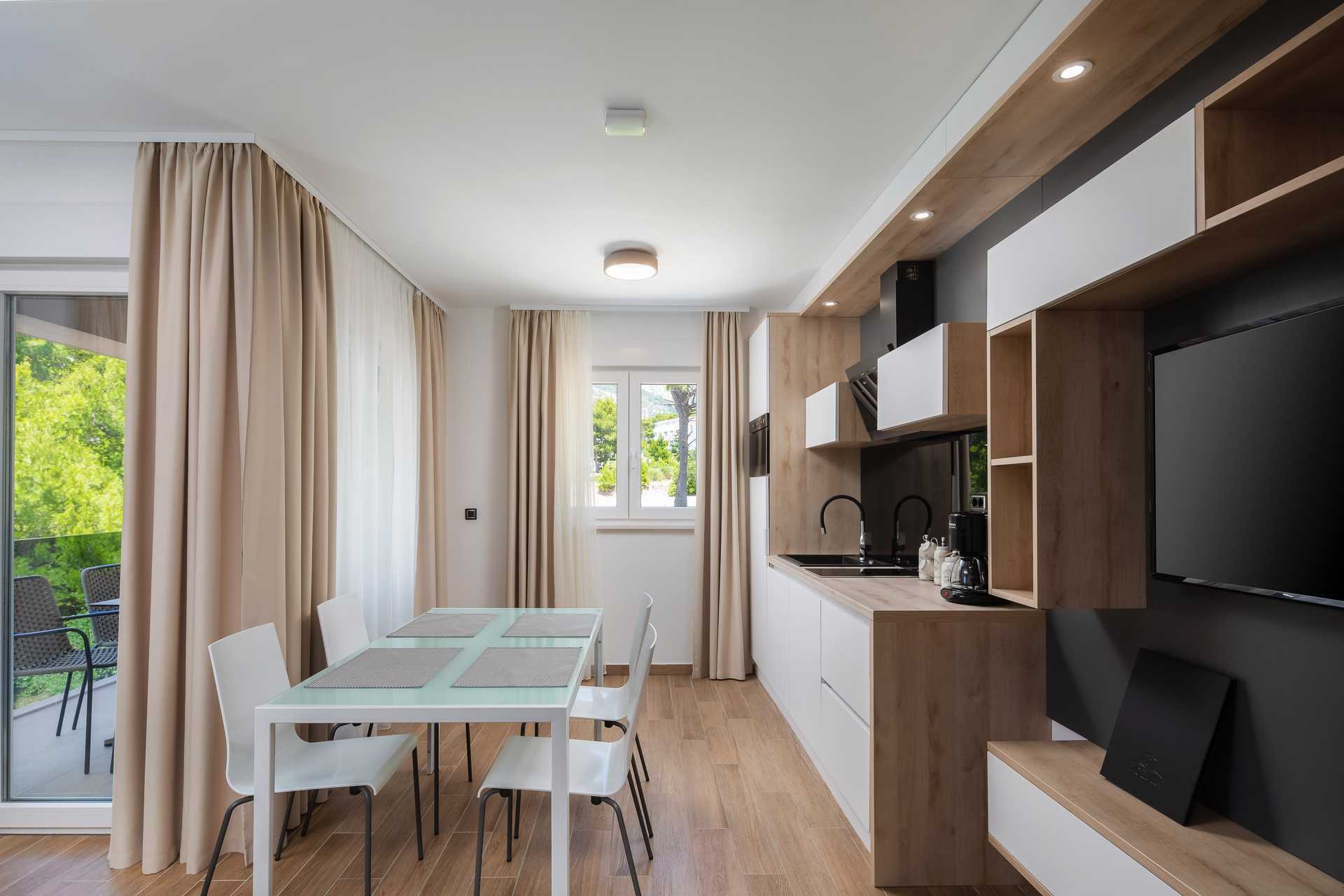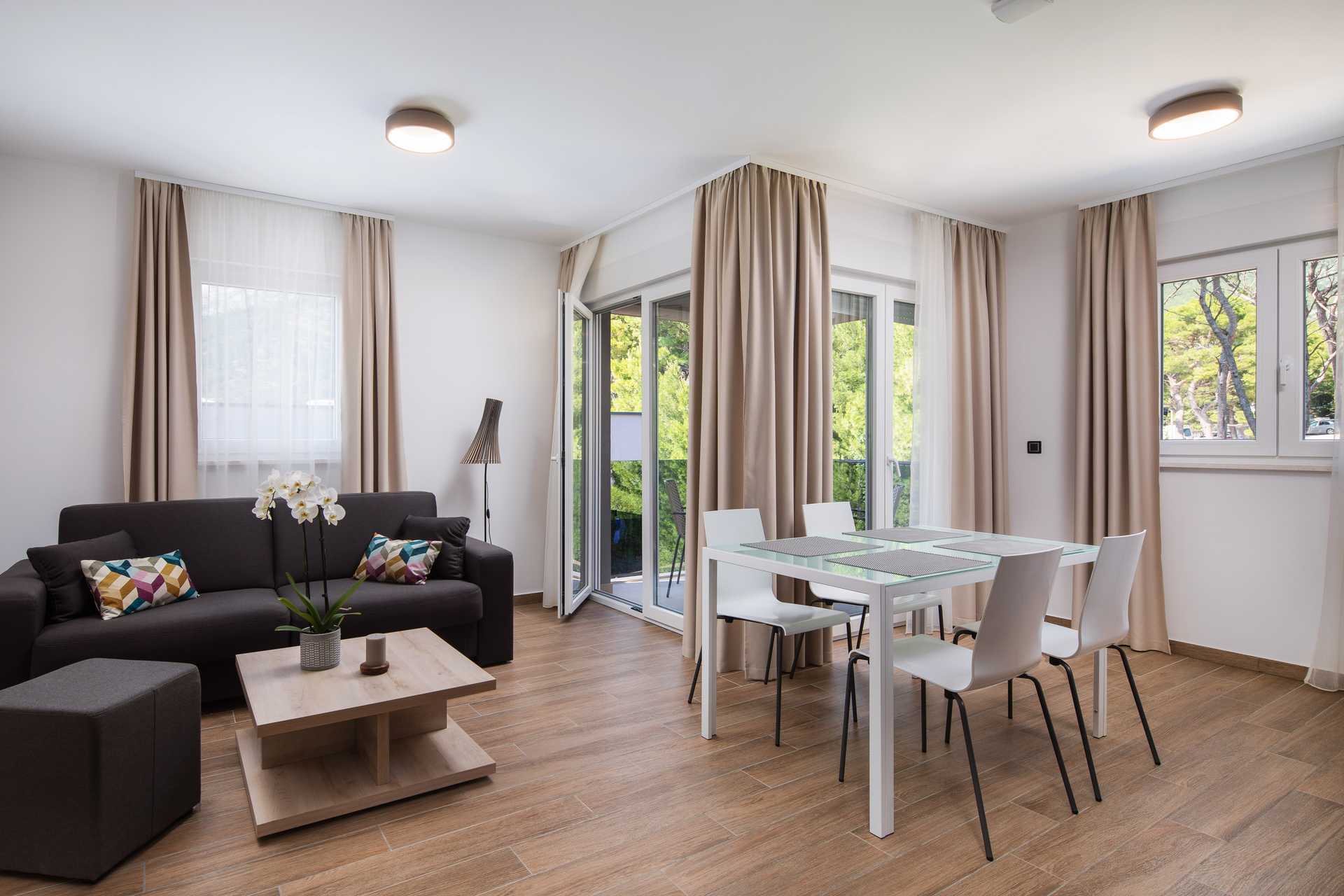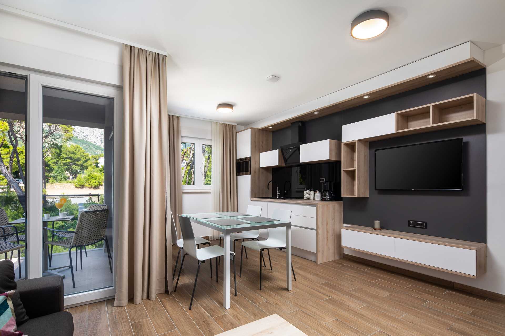 Toromsleilighet med markbalkong eller balkong. Noen balkonger har havutsikt eller begrenset havutsikt. Et soverom og kombinert stue med minikjøkken. En dobbeltseng eller to enkeltsenger. Mulig med en ekstraseng i sovesofa. Minikjøkken med kjøleskap, kokeplater og enkelt kjøkkenutstyr. Wifi, luftkondisjonering og safe inkludert. TV. Strykejern og strykebrett. Badekåper og tøfler Hårføner. Badekar eller dusj samt wc. Rengjøring 6 ggr/uke.