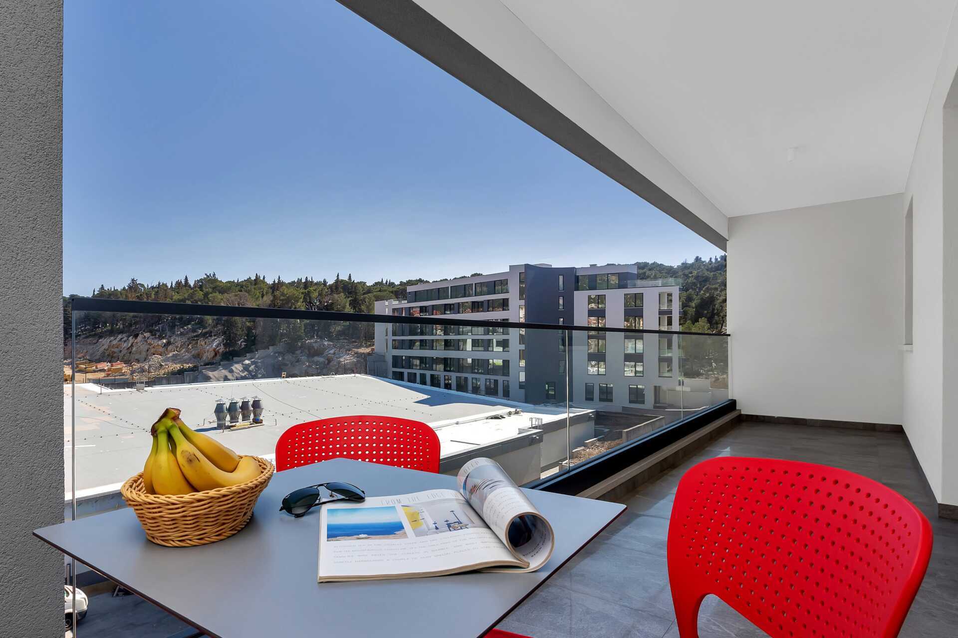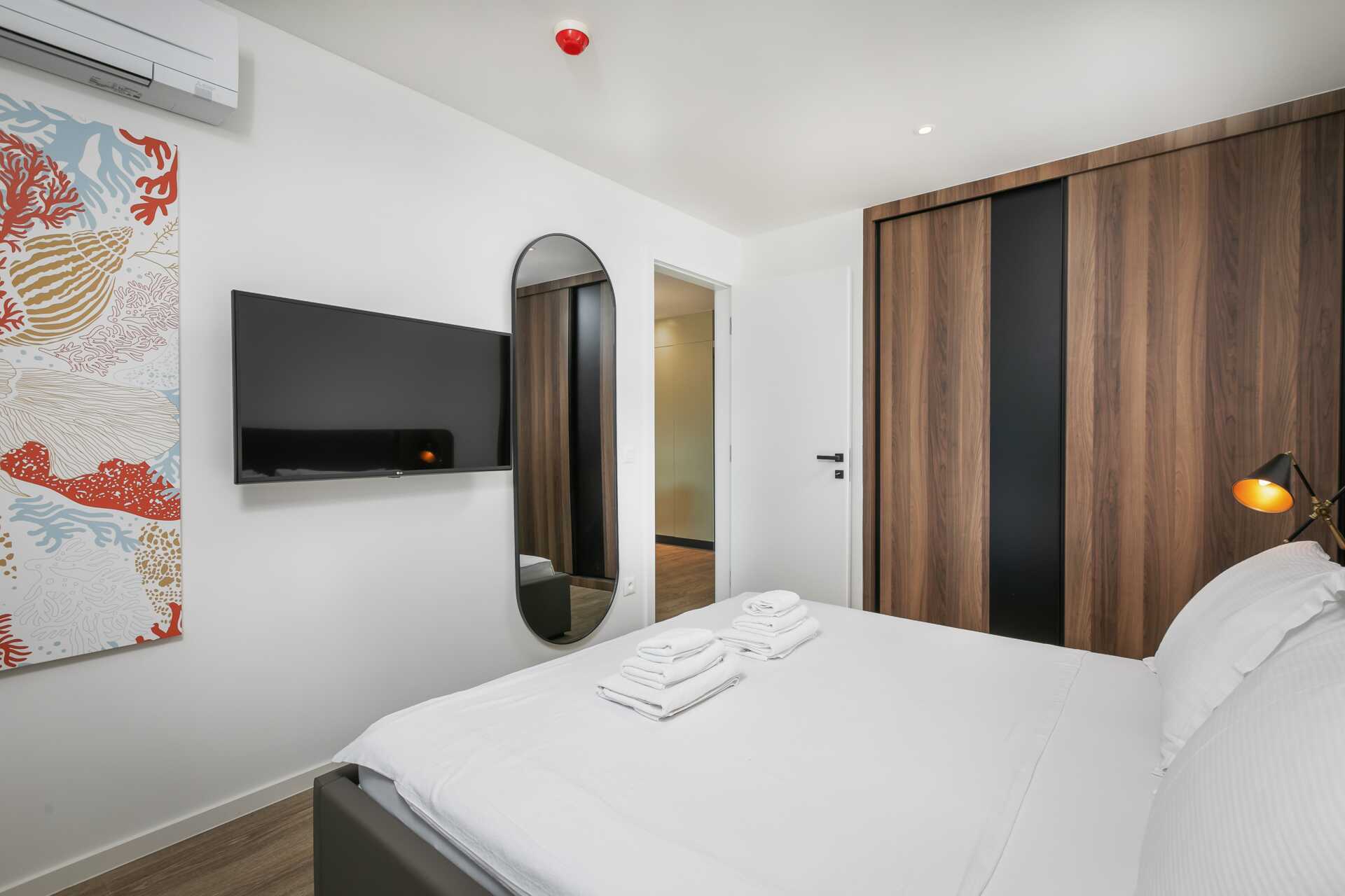 Toromsleilighet med balkong. Et soverom og stue med minikjøkken. En dobbeltseng eller to enkeltsenger. Mulig med ekstrasenger i køyeseng. Minikjøkken med kjøleskap, kokeplater, oppvaskmaskin, kaffetrakter, vannkoker, mikrobølgeovn og enkel kjøkkenutstyr. Wifi, luftkondisjonering og safe inkludert. TV. Hårføner. Bad med vaskemaskin, dusj og wc. Rengjøring 7 ggr/uke.