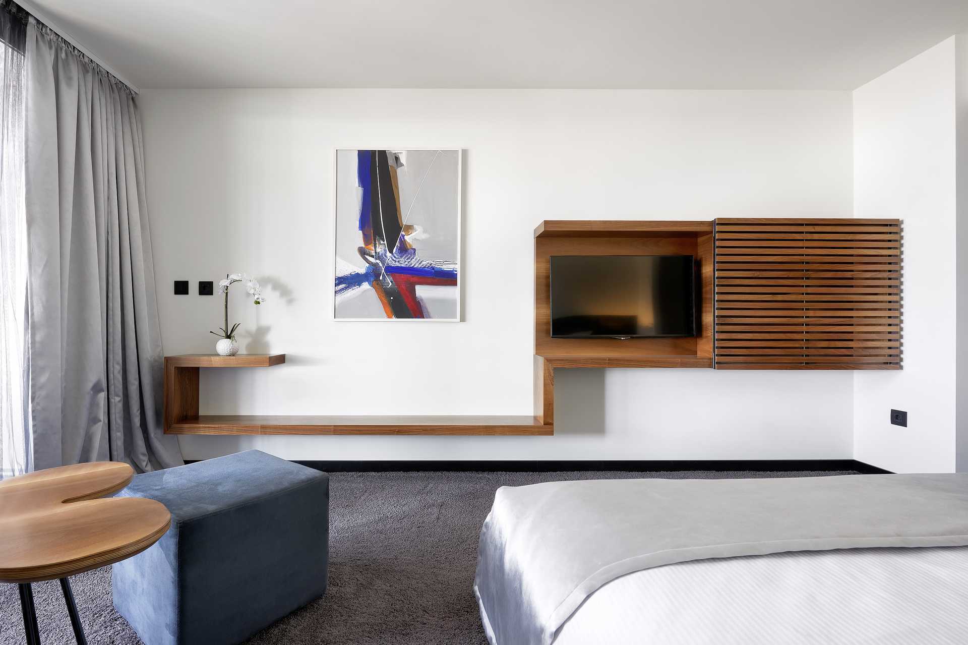 Dobbeltrom uten uteplass. En dobbeltseng. Wifi, luftkondisjonering og safe inkludert. Minibar. Vannkoker samt kaffe og te. TV. Vegg-til-vegg-teppe. Badekåper og tøfler Hårføner. Baderom med dusj og wc. Rengjøring 7 ggr/uke.