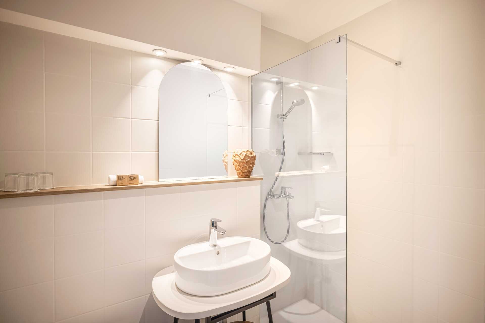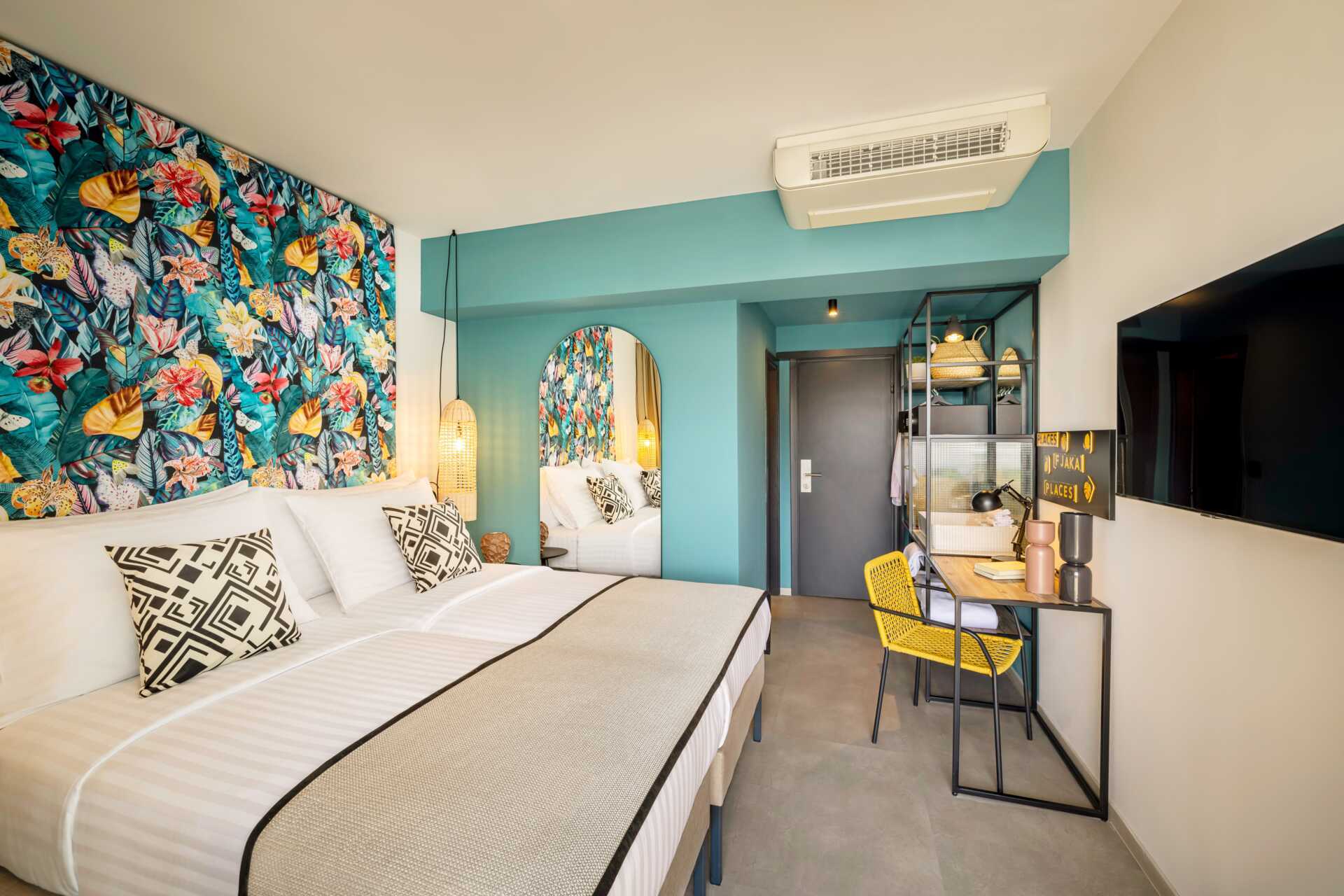 Dobbeltrom med balkong og begrenset havutsikt. En dobbeltseng eller to enkeltsenger. Wifi, luftkondisjonering og safe inkludert. TV. Kjøleskap. Hårføner. Lite bad med dusj og wc. Rengjøring 7 ggr/uke.