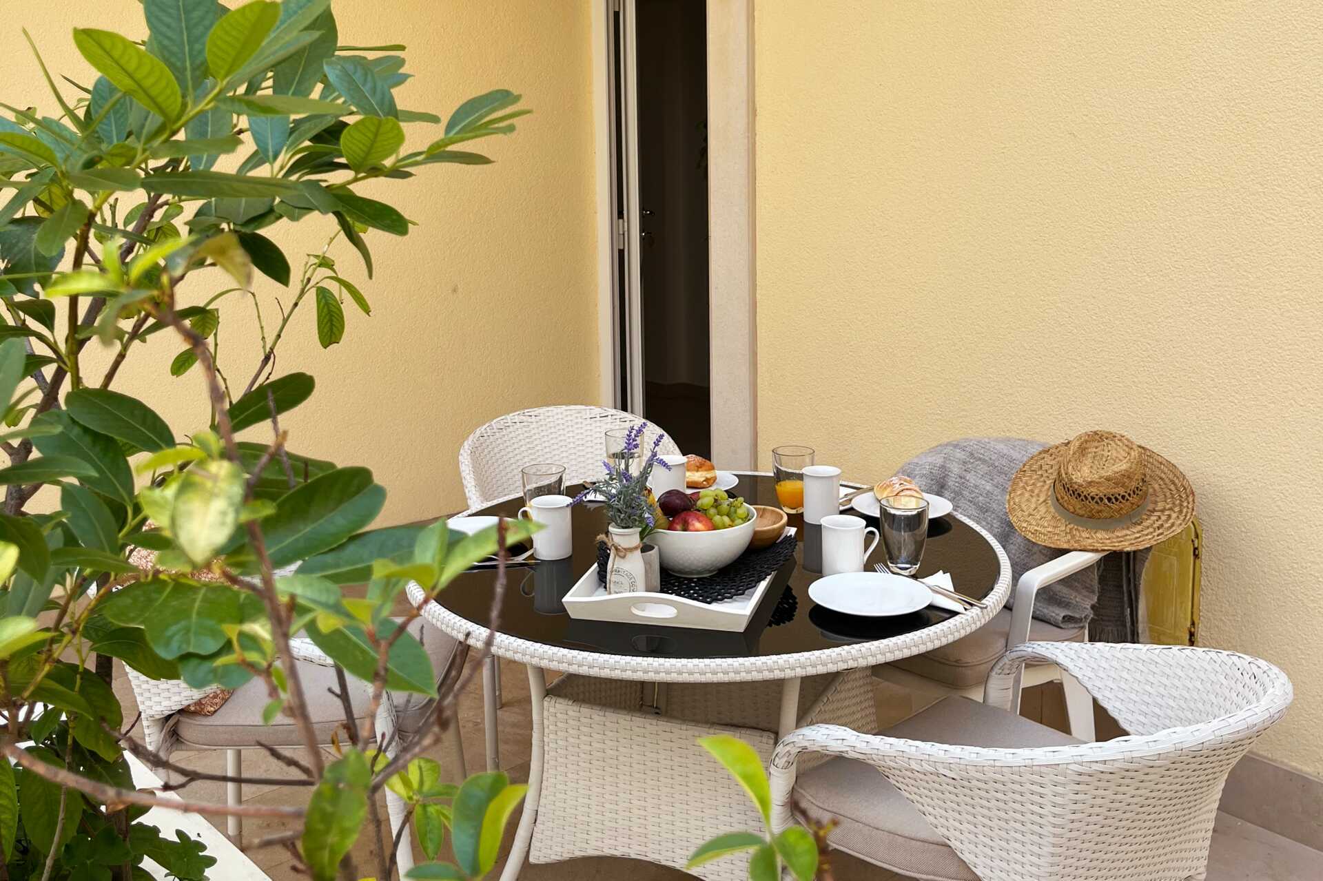 Vi bodde ikke på hotell, men i et hus i gamlebyen i en liten studioleilighet med egen balkong, akkurat slik vi vil ha det.