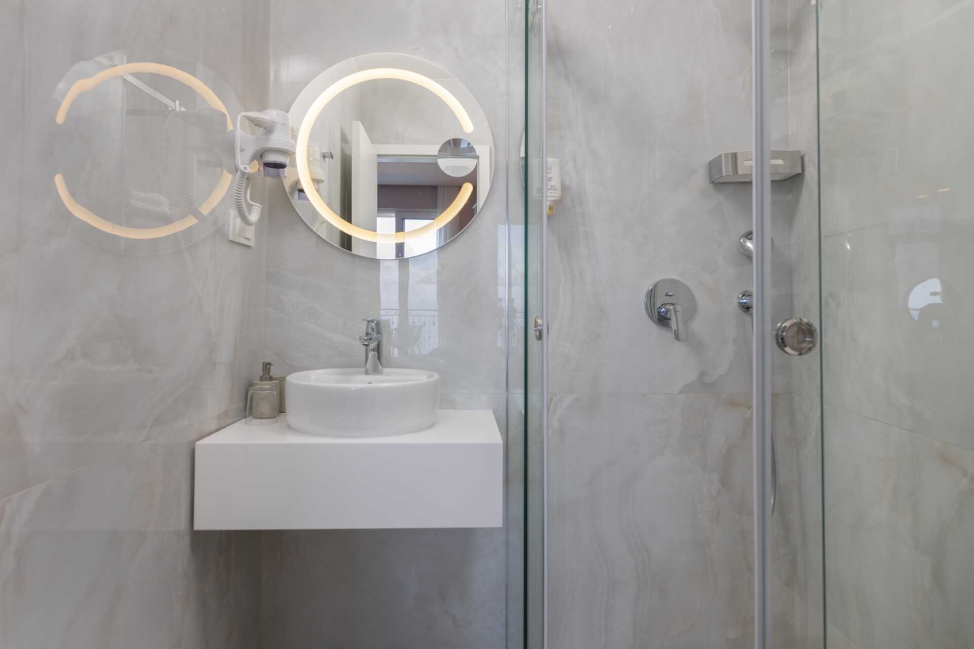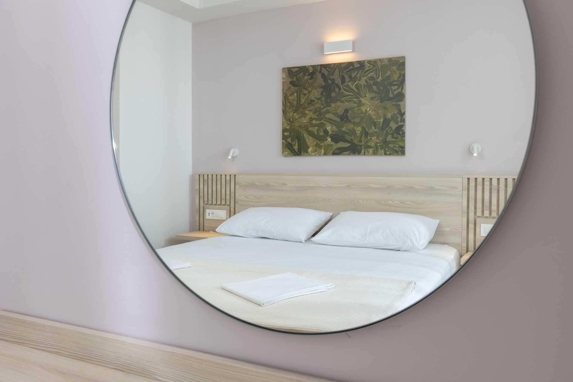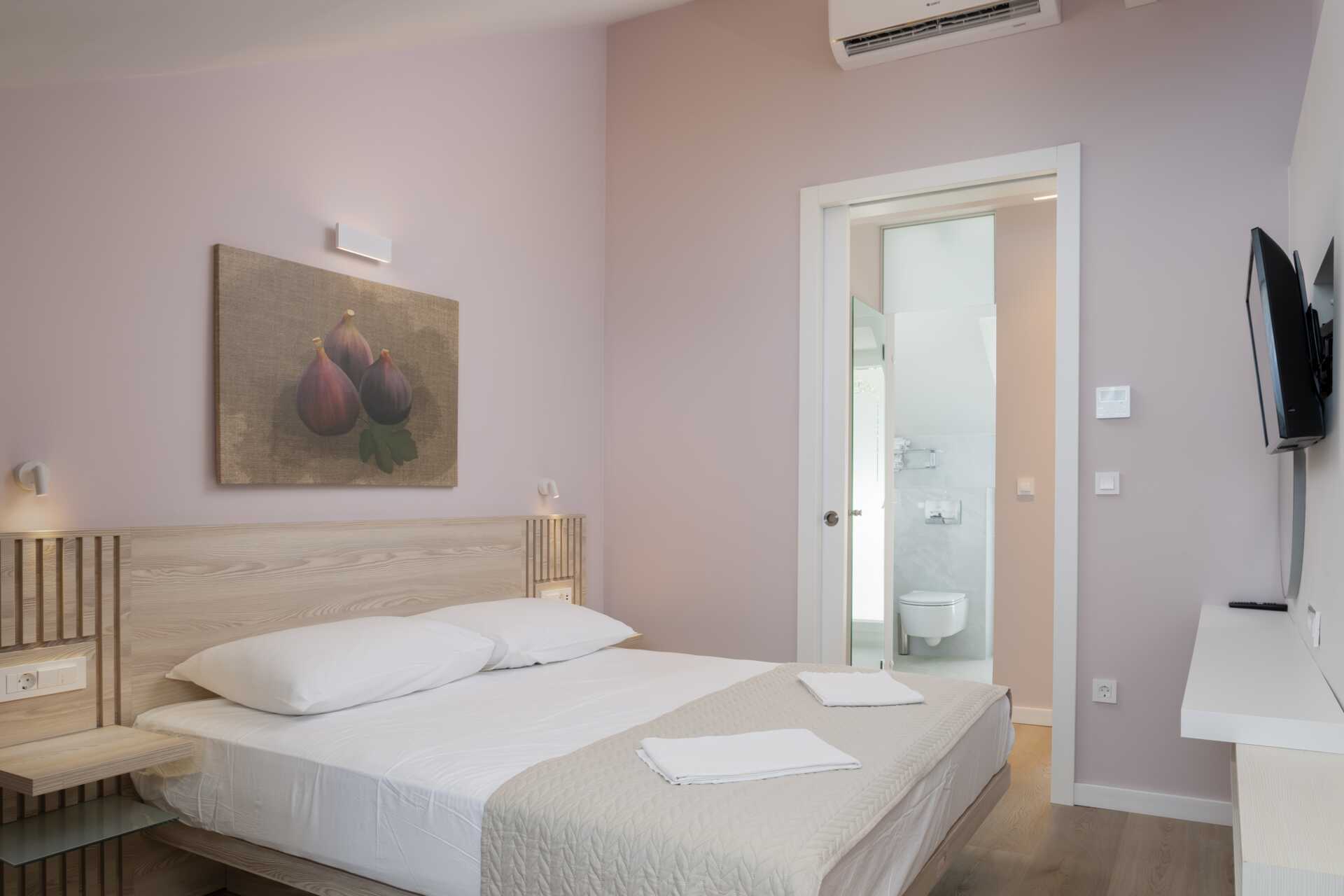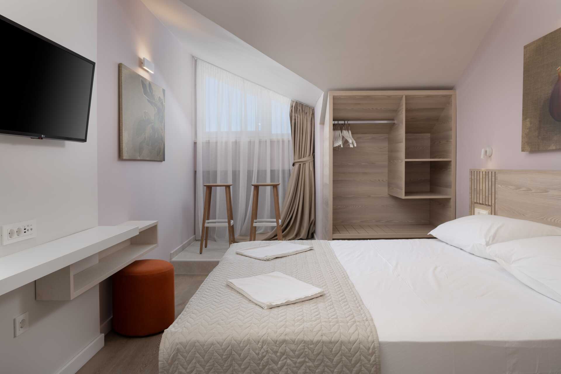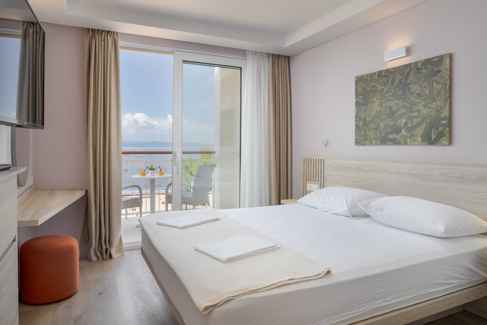 Dobbeltrom med balkong og havutsikt. Dobbeltrommet og balkongen har ulik størrelse. En dobbeltseng eller to enkeltsenger. Mulig med en ekstraseng i sovesofa. Lite kjøkkenkrok med kjøleskap, vannkoker, kaffetrakter og enkelt kjøkkenutstyr. Det er ikke kokeplater. Wifi, luftkondisjonering og safe inkludert. TV med lokale kanaler. Hårføner. Dusj og wc. Rengjøring 7 ggr/uke.