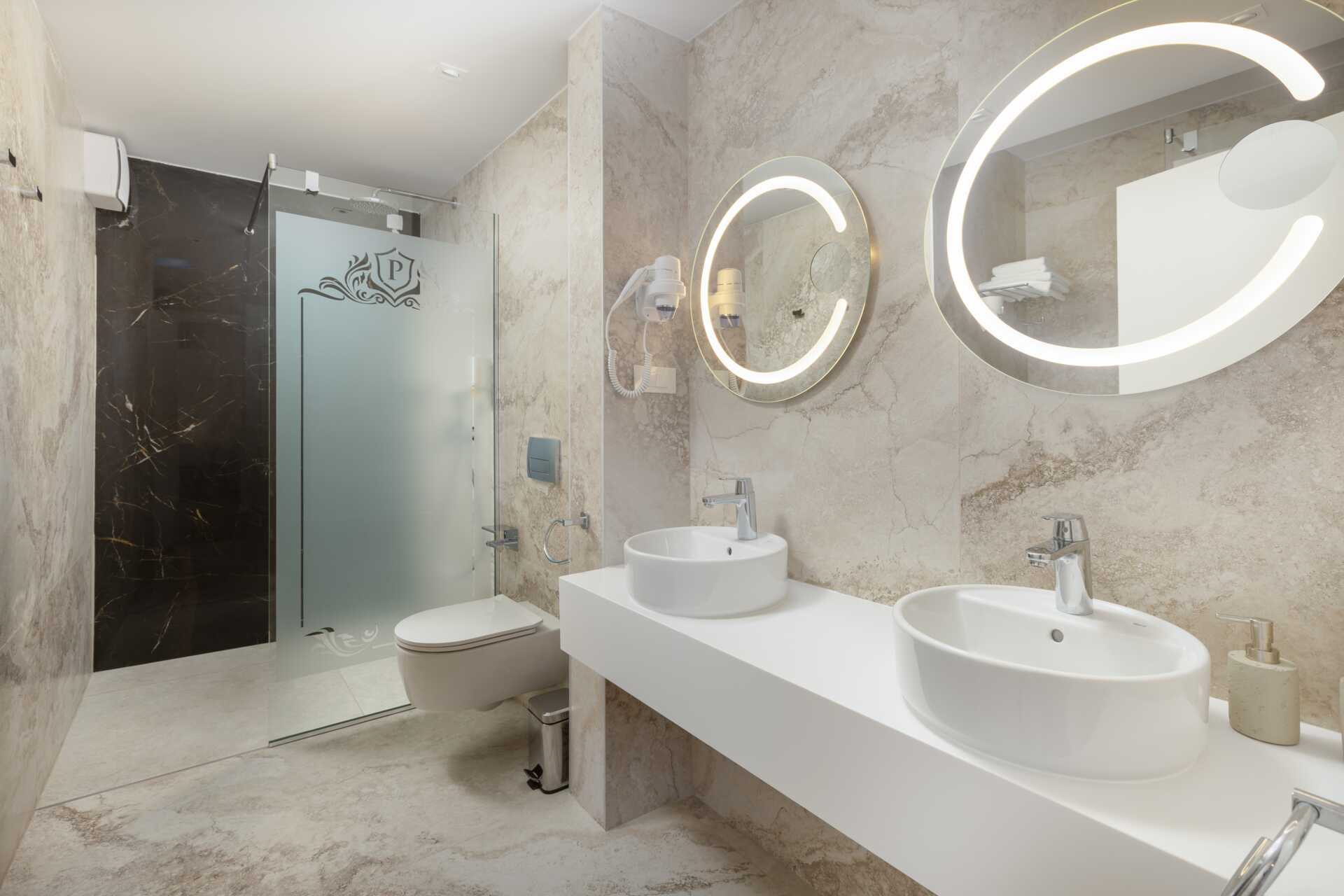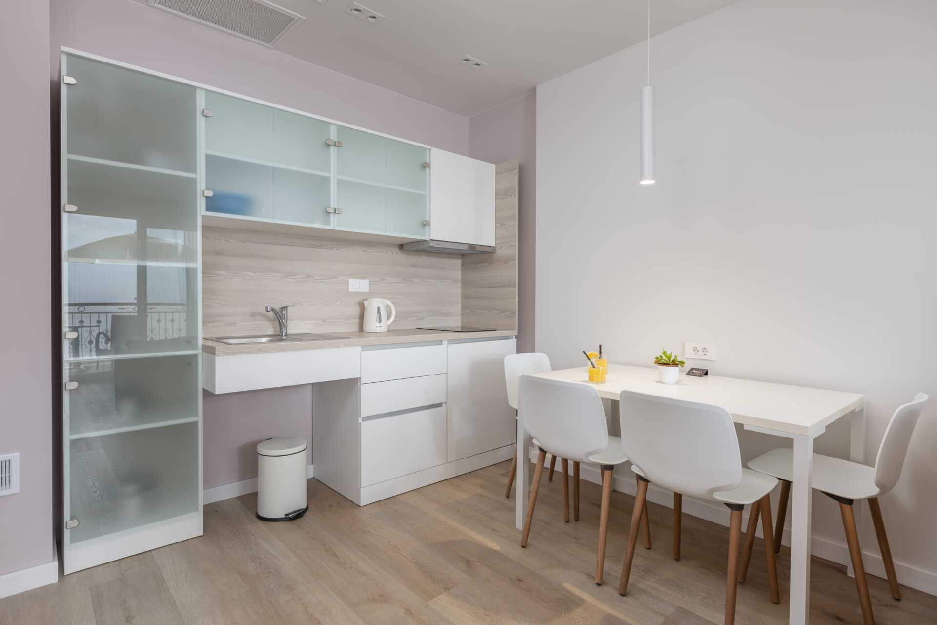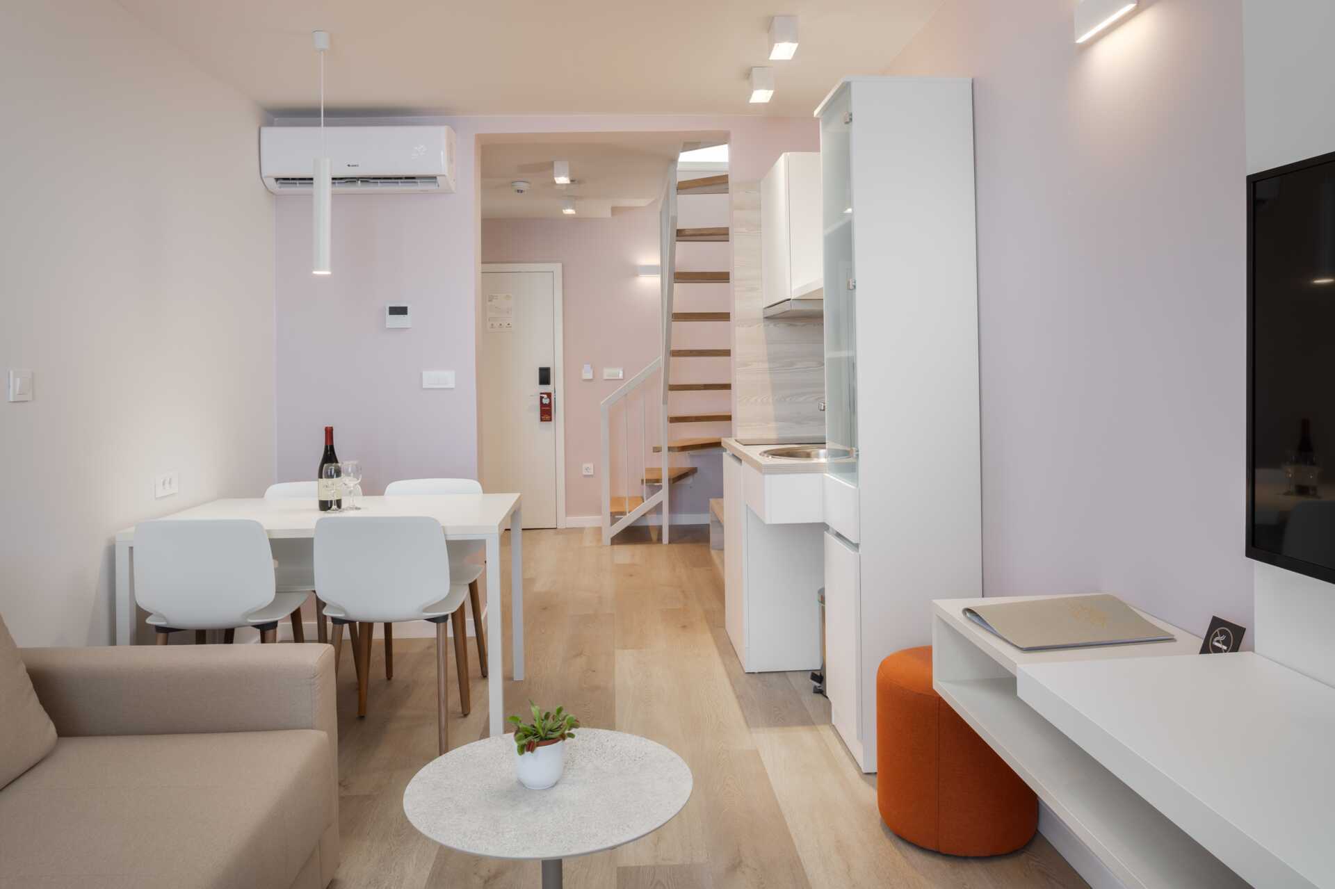 Juniorsuiter med balkong eller terrasse i varierende størrelser, noen balkonger har havutsikt. Soverom og kombinert stue med lite kjøkkenområde. I noen toromsleiligheter har trapper. En dobbeltseng eller to enkeltsenger. Mulig med ekstrasenger i sovesofa. Lite kjøkkenkrok med kjøleskap, vannkoker, kaffetrakter og enkelt kjøkkenutstyr. Det er ikke kokeplater. Wifi, luftkondisjonering og safe inkludert. TV. Hårføner. Dusj og wc. Rengjøring 7 ggr/uke.