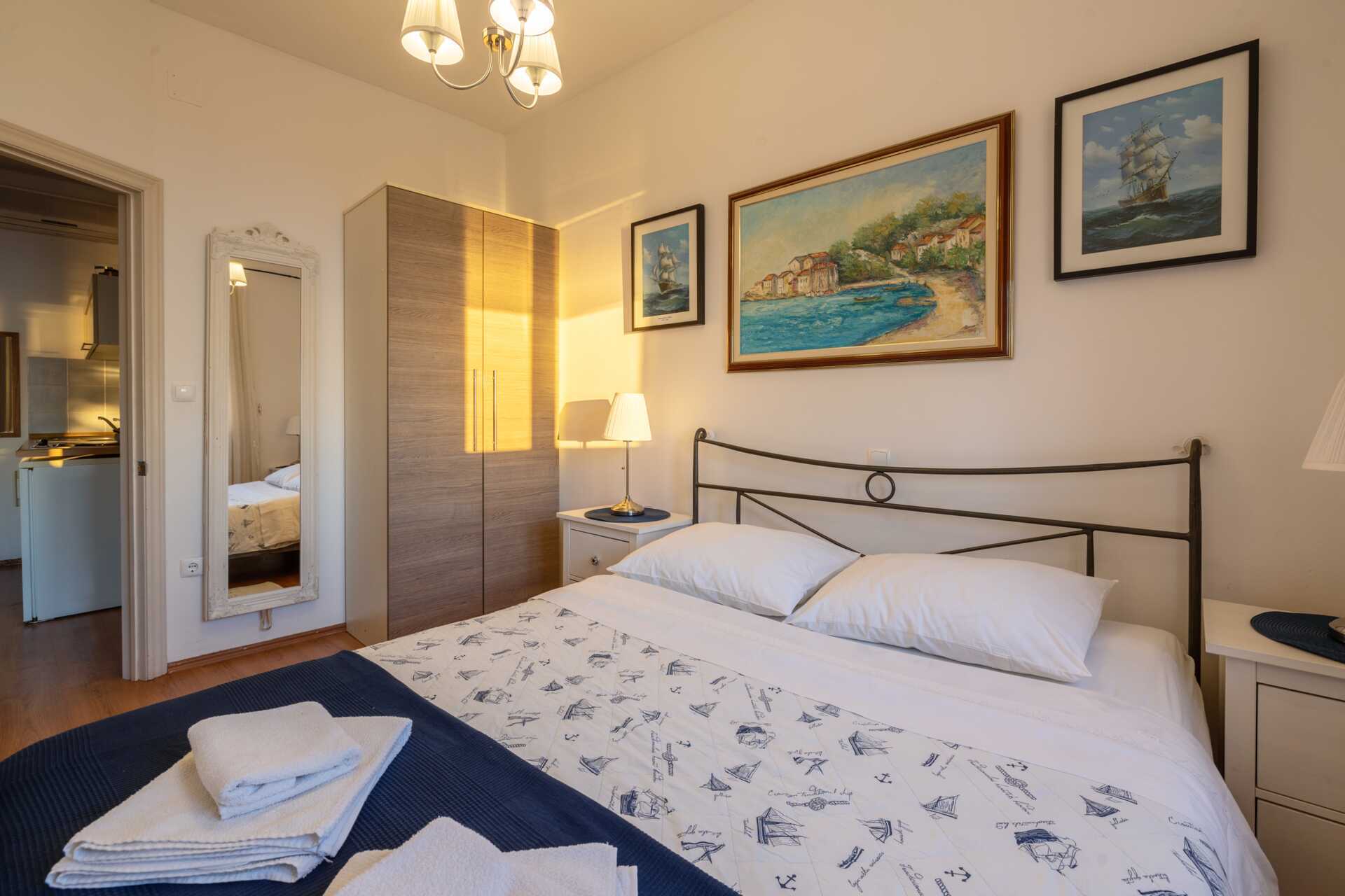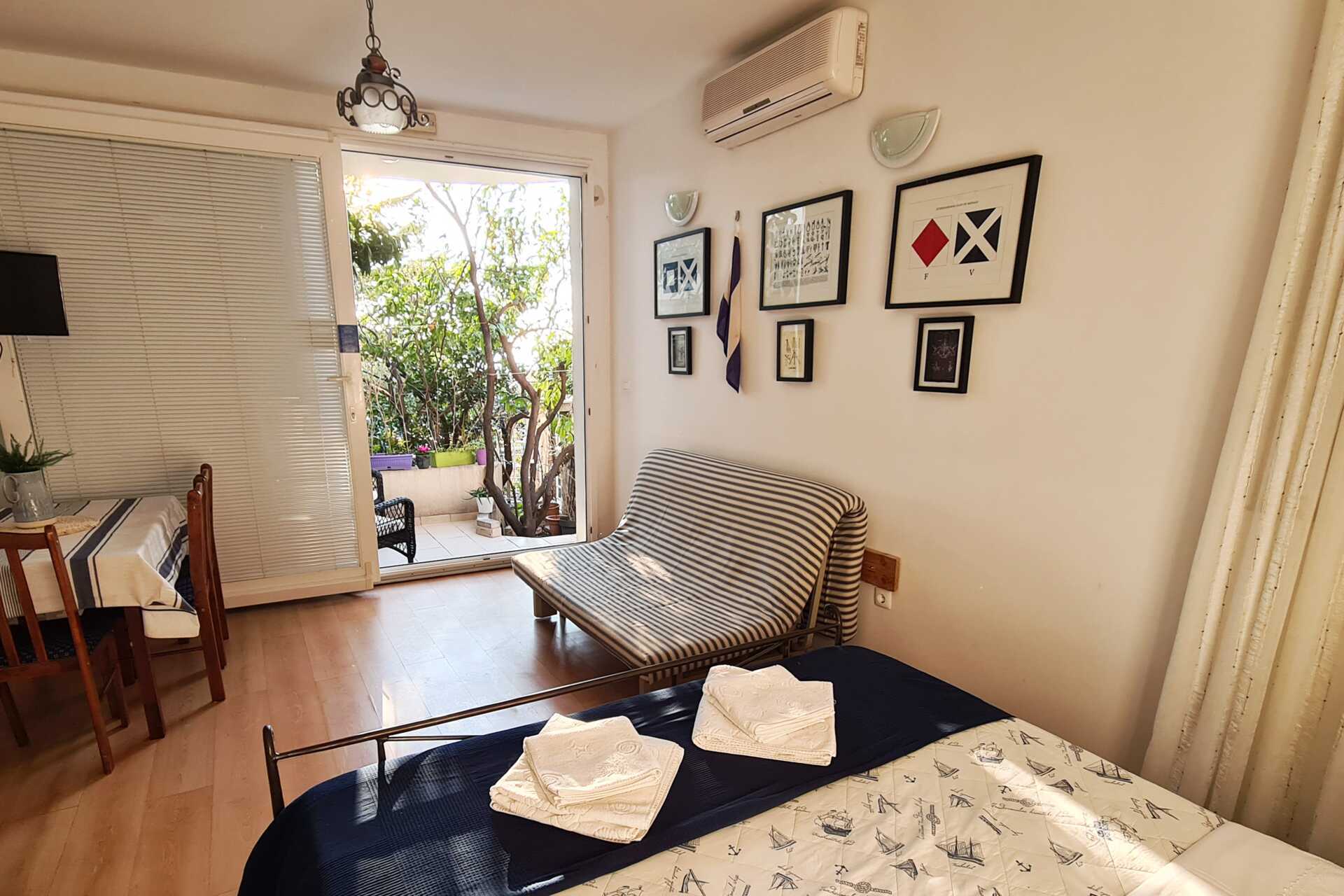 Ettromsleiligheter med markterrasse. En dobbeltseng. Mulig med ekstraseng i sovesofa. Minikjøkken med kokeplater, kjøleskap, kaffetrakter, vannkoker, brødrister og enkelt kjøkkenutstyr. Luftkondisjonering, safe og wifi inkludert. TV. Dusj og wc, hårføner. Rengjøring 6 ggr/uke.