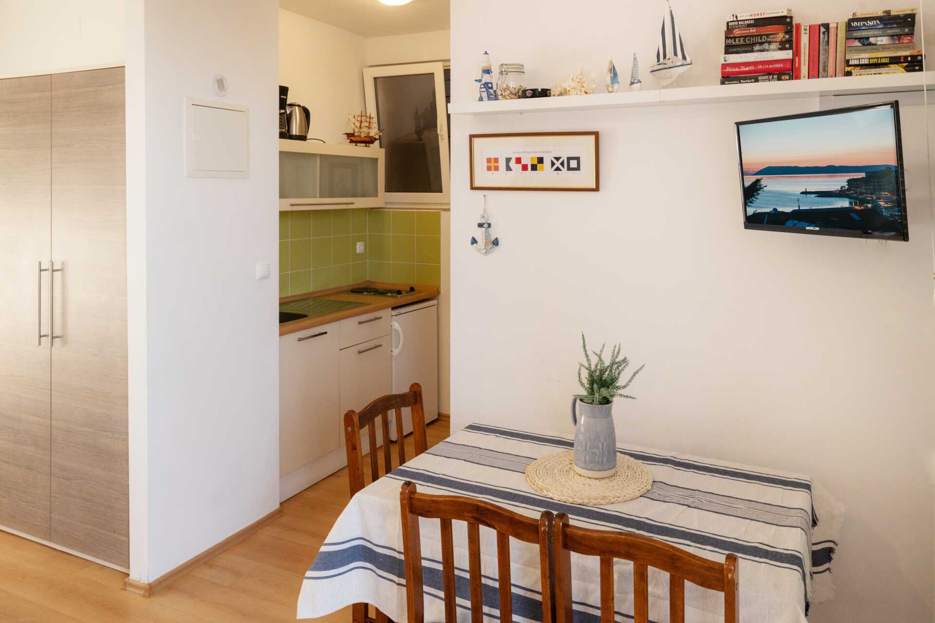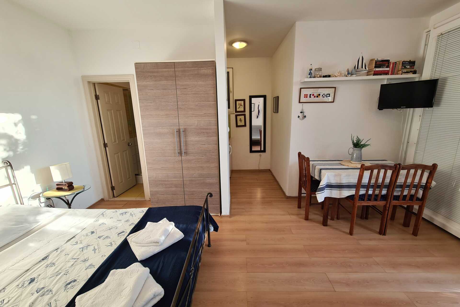 Toromsleiligheter med balkong. Et soverom med en dobbeltseng. Mulig med ekstraseng i sovesofa i stuedel. Minikjøkken med kokeplater, kjøleskap, kaffetrakter, vannkoker, brødrister og enkelt kjøkkenutstyr. Luftkondisjonering, safe og wifi inkludert. TV. Dusj og wc, hårføner. Rengjøring 6 ggr/uke.