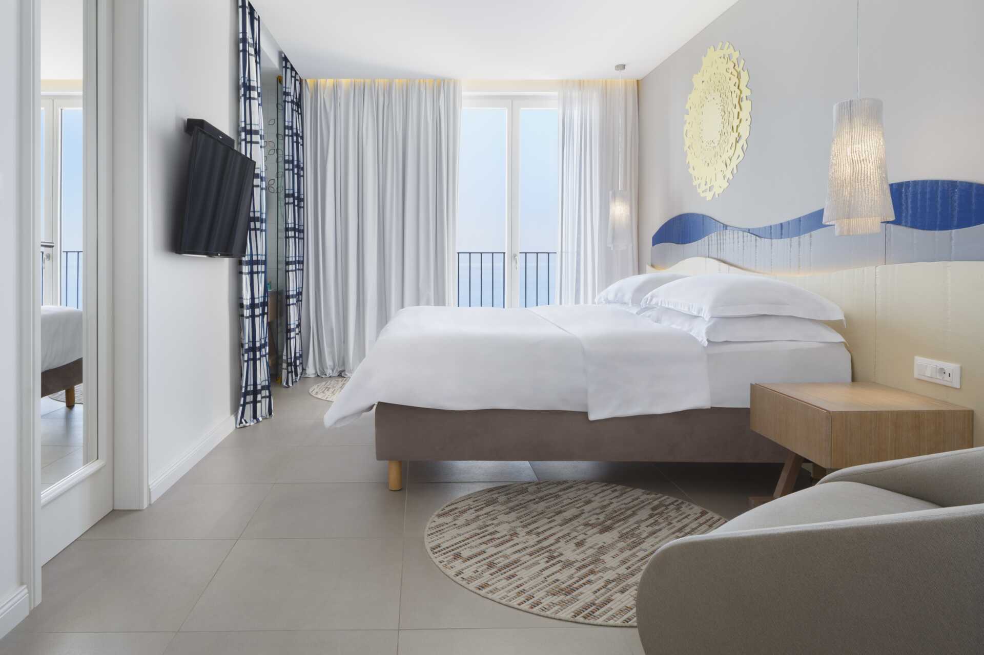 Dobbeltrom med fransk balkong eller balkong, noen med havutsikt. To enkeltsenger. Wifi, luftkondisjonering og safe inkludert. Kjøleskap. Vannkoker samt kaffe og te. TV. Tøfler. Hårføner. Baderom med dusj og wc. Rengjøring 7 ggr/uke.