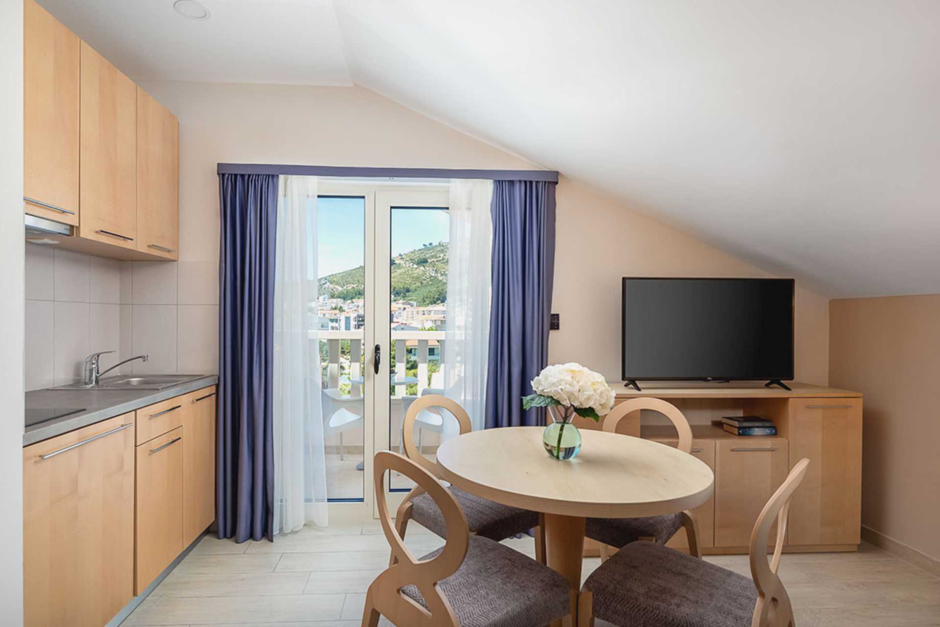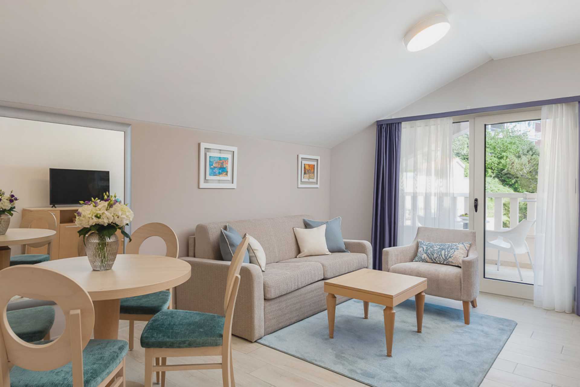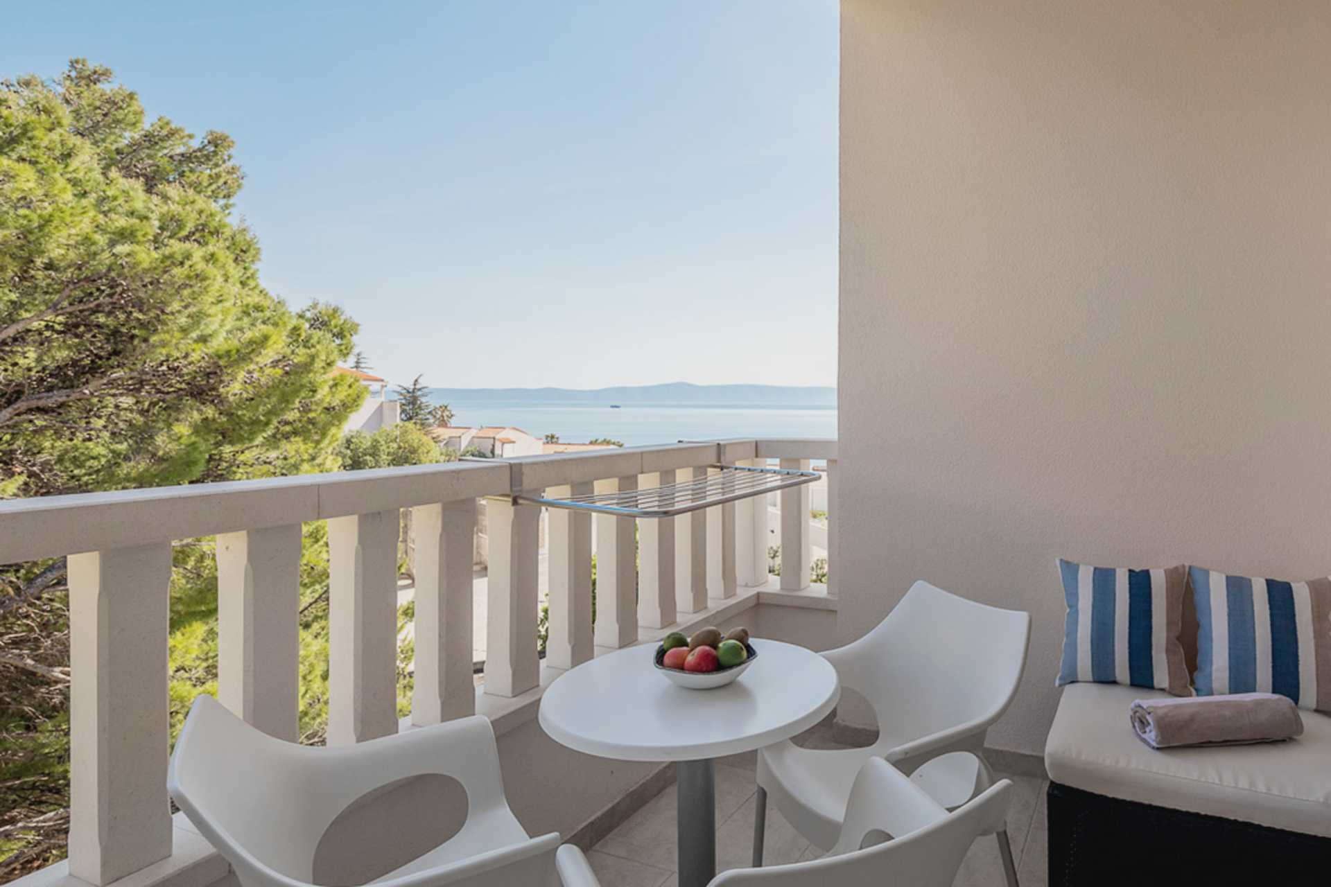 Toromsleilighet med markbalkong eller balkong. Noen av balkongene har begrenset havutsikt. Leilighetene har ulik utforming, og leilighetene i toppetasjen har skråtak, og balkongen kan være i ulik størrelse. Et soverom og kombinert stue med minikjøkken. En dobbeltseng. Mulig med ekstrasenger i sovesofa. Minikjøkken med kokeplater, kjøleskap, mikrobølgeovn, vannkoker og enkelt kjøkkenutstyr. Wifi, luftkondisjonering og safe inkludert. TV. Hårføner. Badekåper og tøfler Badekar eller dusj samt wc. Rengjøring 7 ggr/uke.