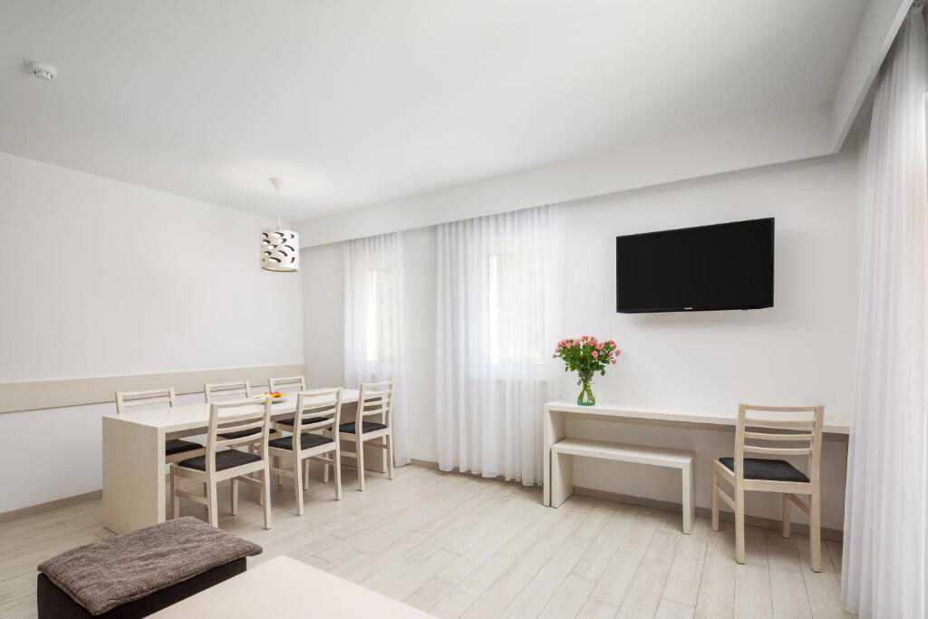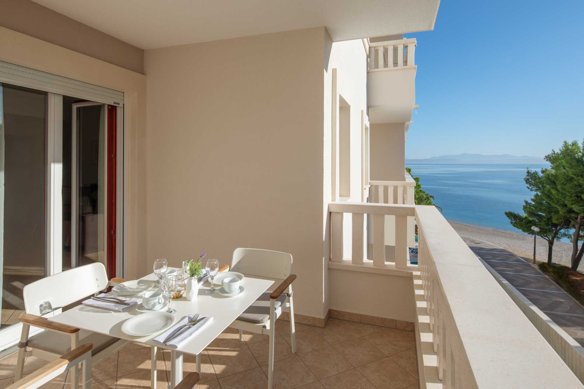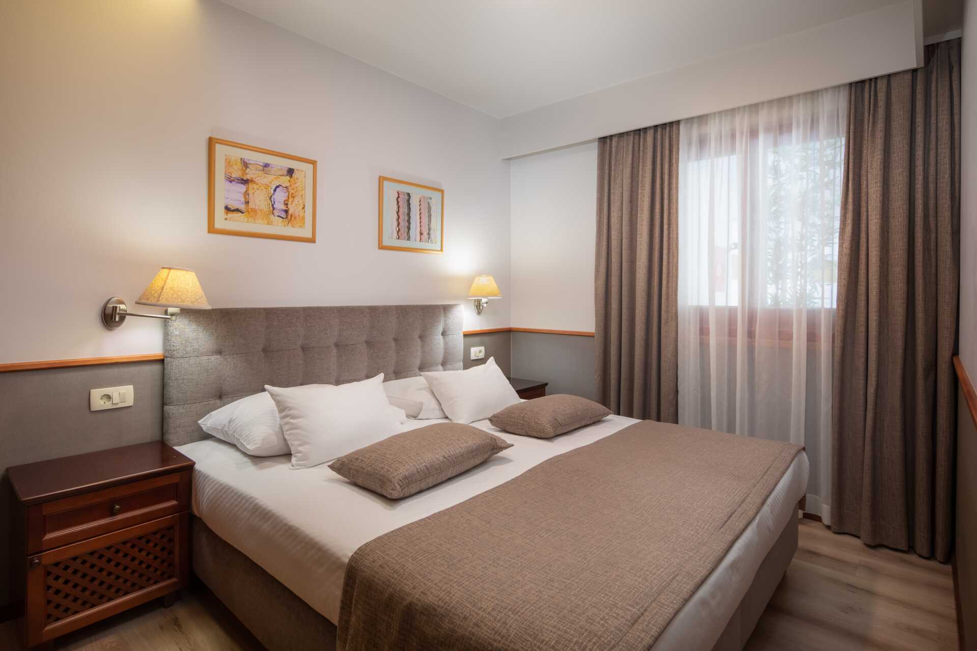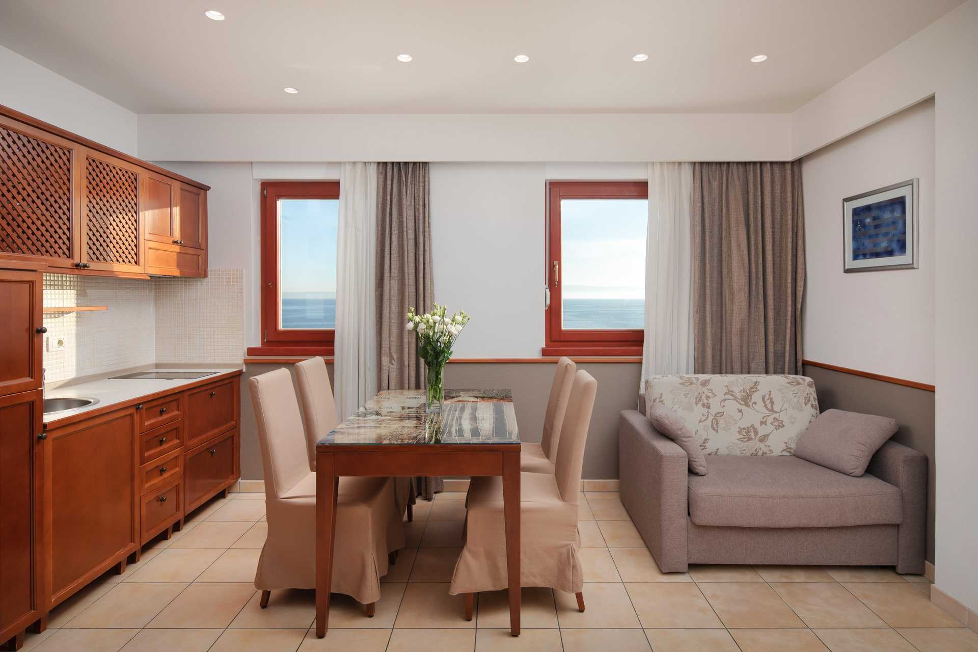 Toromsleilighet superior med balkong og begrenset havutsikt. Et soverom og en stue med minikjøkken. En dobbeltseng eller to enkeltsenger. Mulig med ekstraseng i sovesofa. Minikjøkken med kokeplater, kjøleskap, brødrister og enkelt kjøkkenutstyr. Kaffetraktere, vannkoker og brødristere kan lånes i resepsjonen. Wifi, luftkondisjonering og safe inkludert. TV. Hårføner. Badekar eller dusj samt wc. Rengjøring 7 ggr/uke.