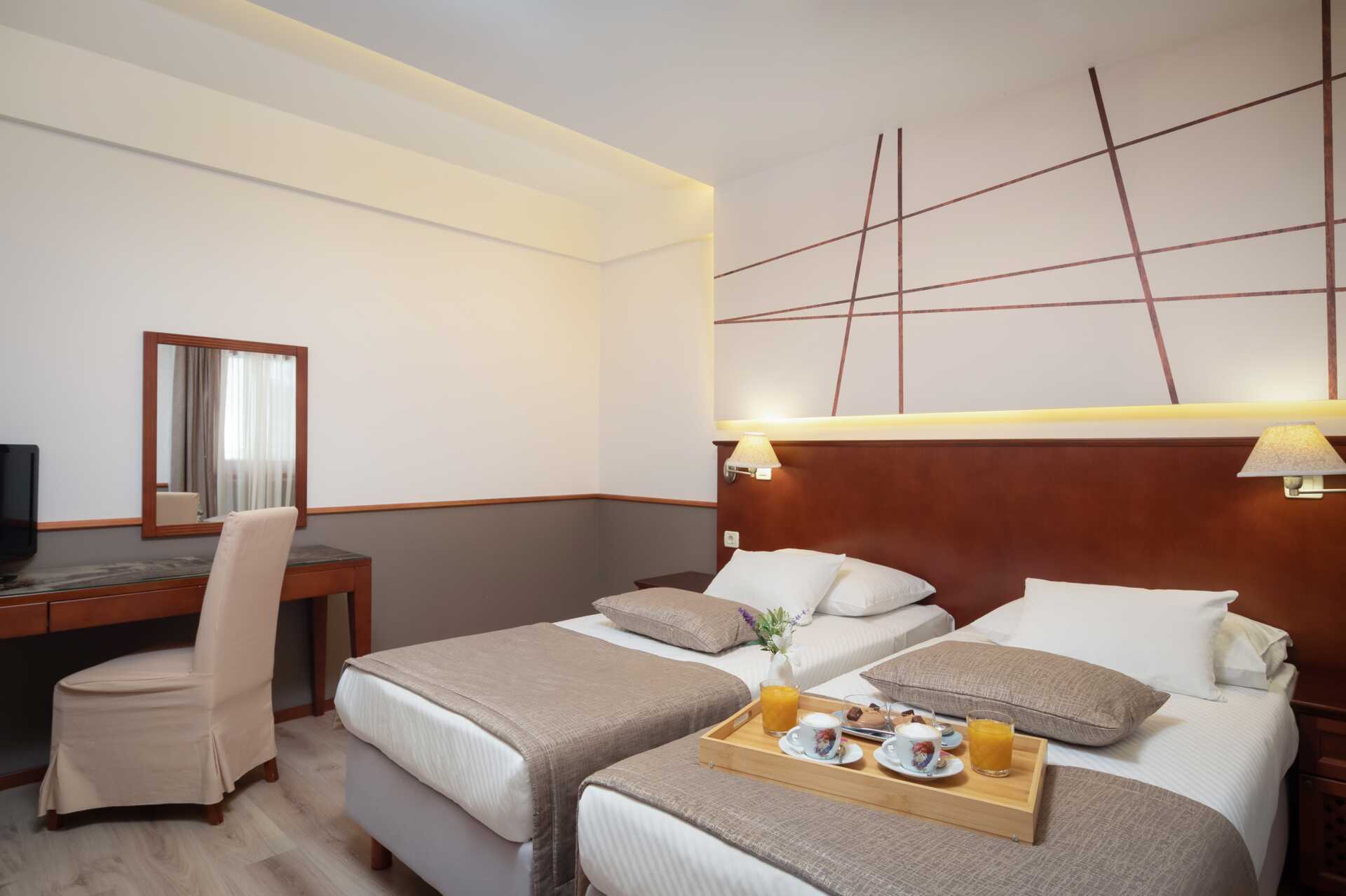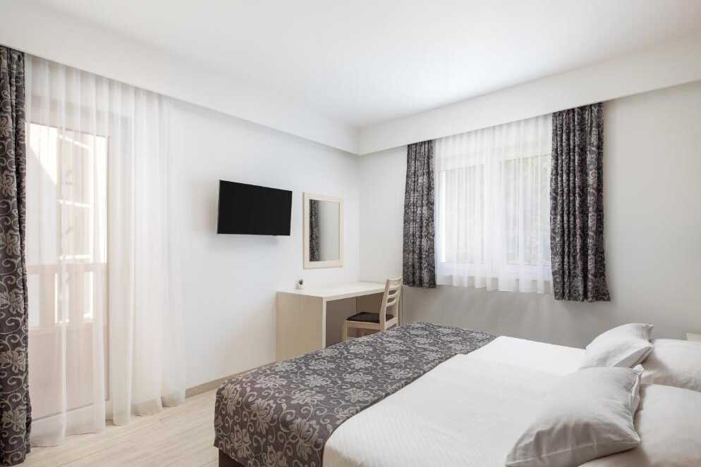 Dobbeltrom, ingen uteplass men noen rom har havutsikt fra vinduet. Rommene ligger i den nye hotelldelen. En dobbeltseng eller to enkeltsenger. Mulig med ekstraseng i sovesofa. Wifi, luftkondisjonering og safe inkludert. Minibar. TV. Hårføner. Badekar eller dusj samt wc. Rengjøring 7 ggr/uke.