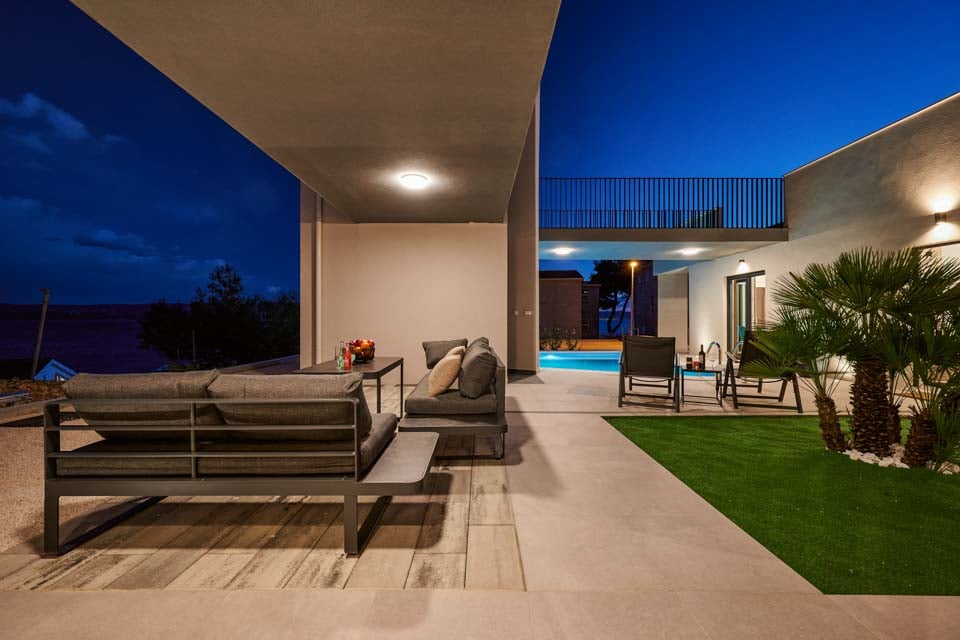 Med en romslig gårdsplass, omgitt av et palmetre og omkranset av myke grå sofaer og solsenger, plassert ved siden av villaens private oppvarmede basseng, finnes det vel ingen bedre måte å tilbringe ferien på enn å slappe av i dette lille stykket av himmelen?
