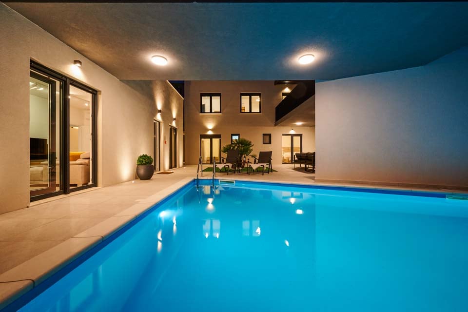 Bassengstørrelse: 6m x 5m, oppvarmet, stigetilgang