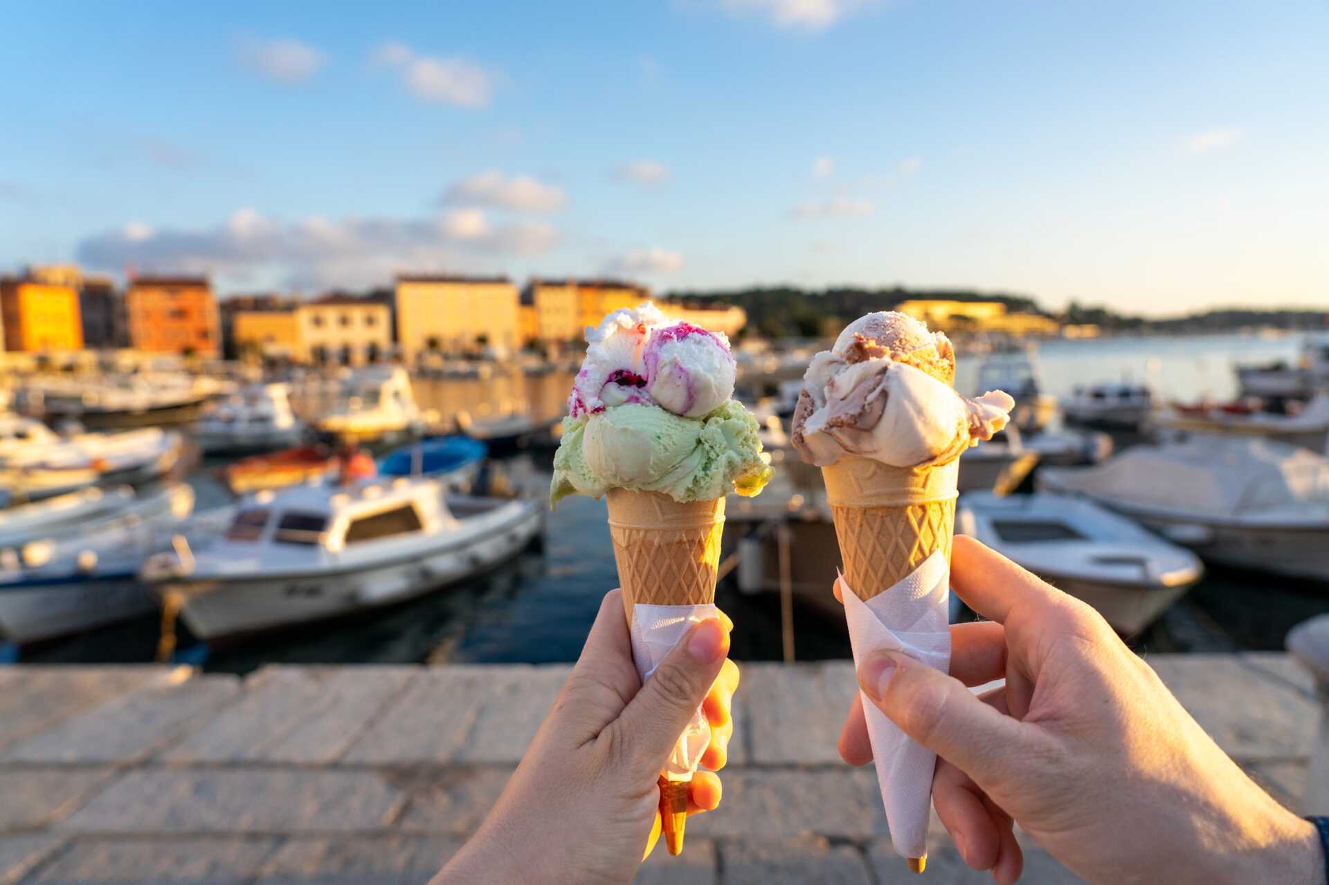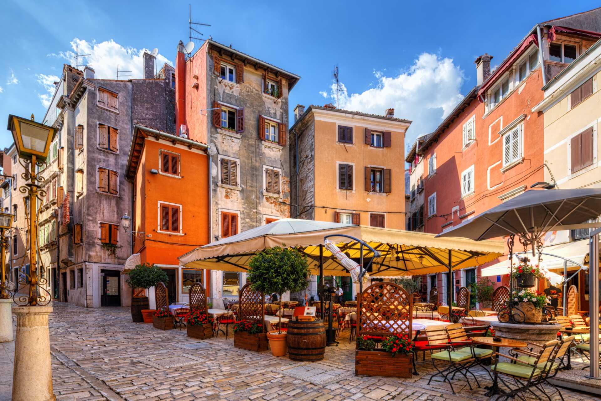 Rovinj er en av Istrias mest sjarmerende kystbyer med brosteinsgater, smale smug og fargerike bygninger. På torget Trg Maršala Tita i havnen ligger tradisjonelle tavernaer og hippe restauranter langs gatene. Langs gatene Grisia og Carera ligger det atelierer og små butikker som selger håndverk, trøfler, olivenolje, grappa og vin – perfekt å kjøpe med seg hjem. Selv i gamlebyen er det fine bademuligheter fra badeplattformer.