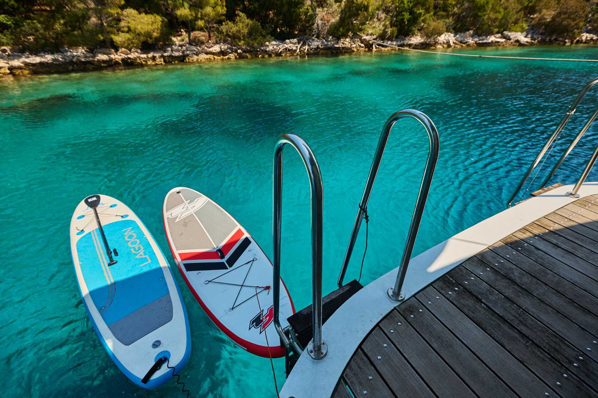 Badeplattform med dusjer i akterenden for enkel tilgang til bad i havet