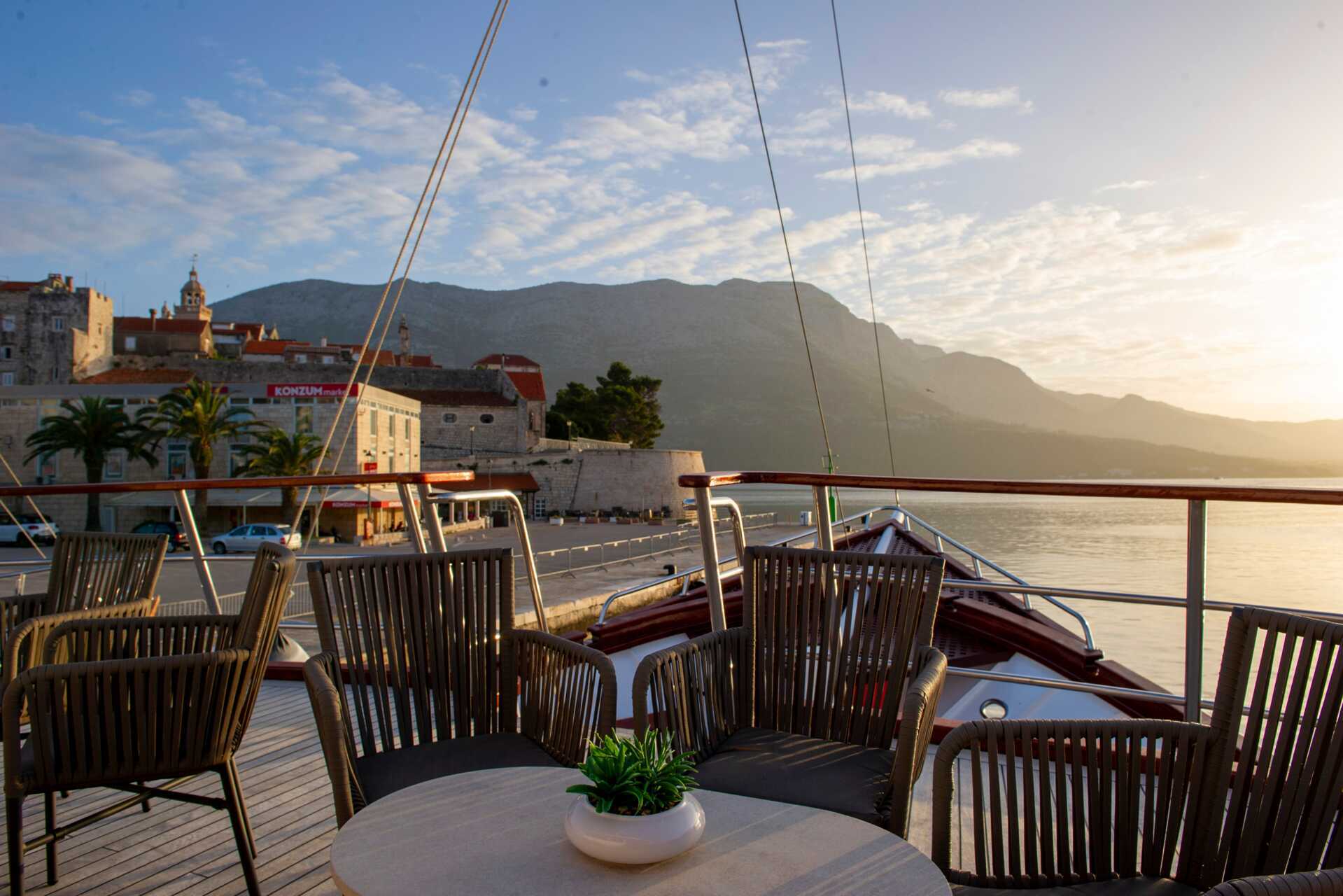 Vi fortsetter cruiset vårt i nordvestlig retning og stopper først ved en bukt blant Elafitiøyene for bading og soling, før vi setter kursen mot øya Korčula. Korčula kan skryte av et av Dalmatias vakreste gamle bykjerner og kalles ofte Lille Dubrovnik på grunn av sitt festningslignende utseende.