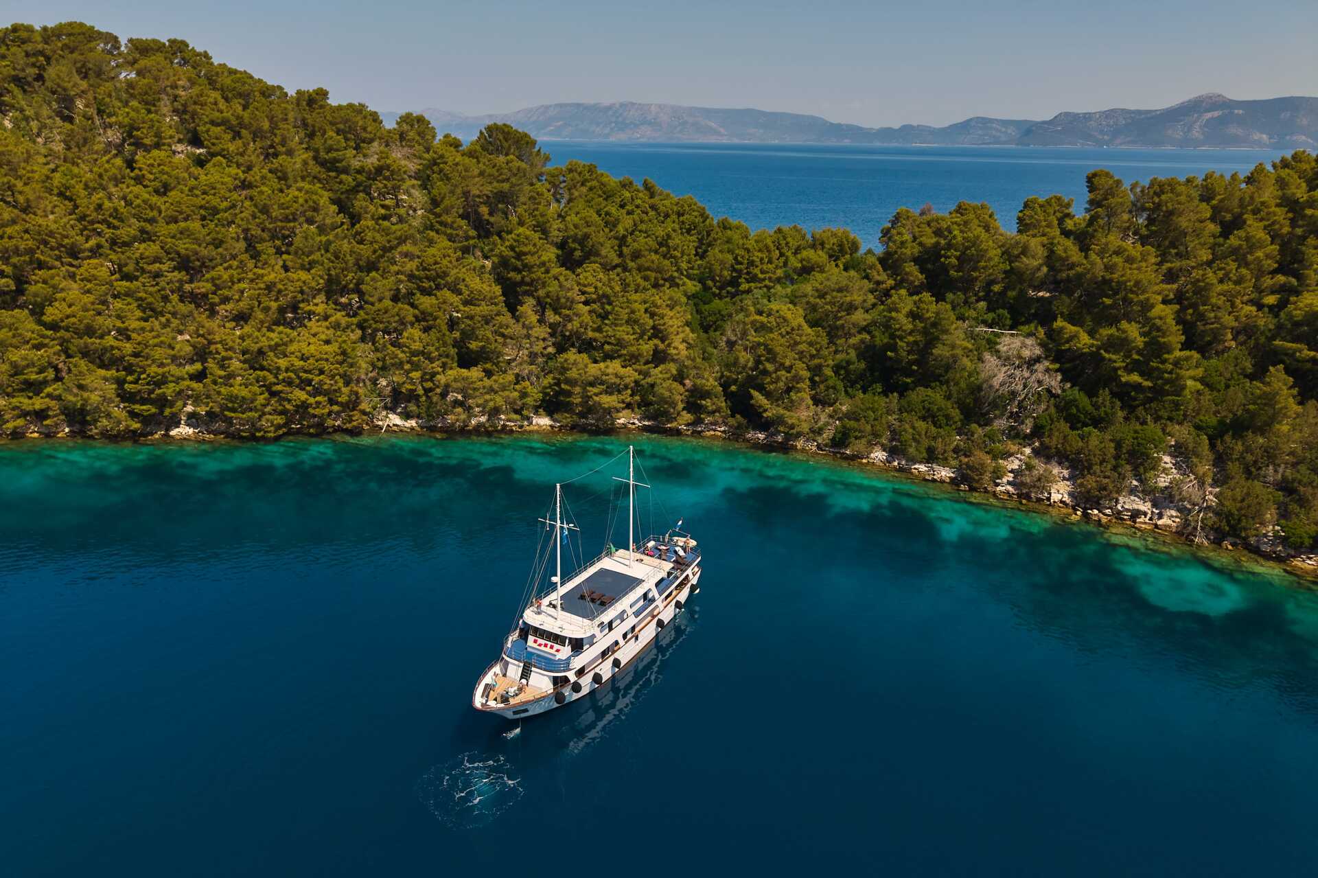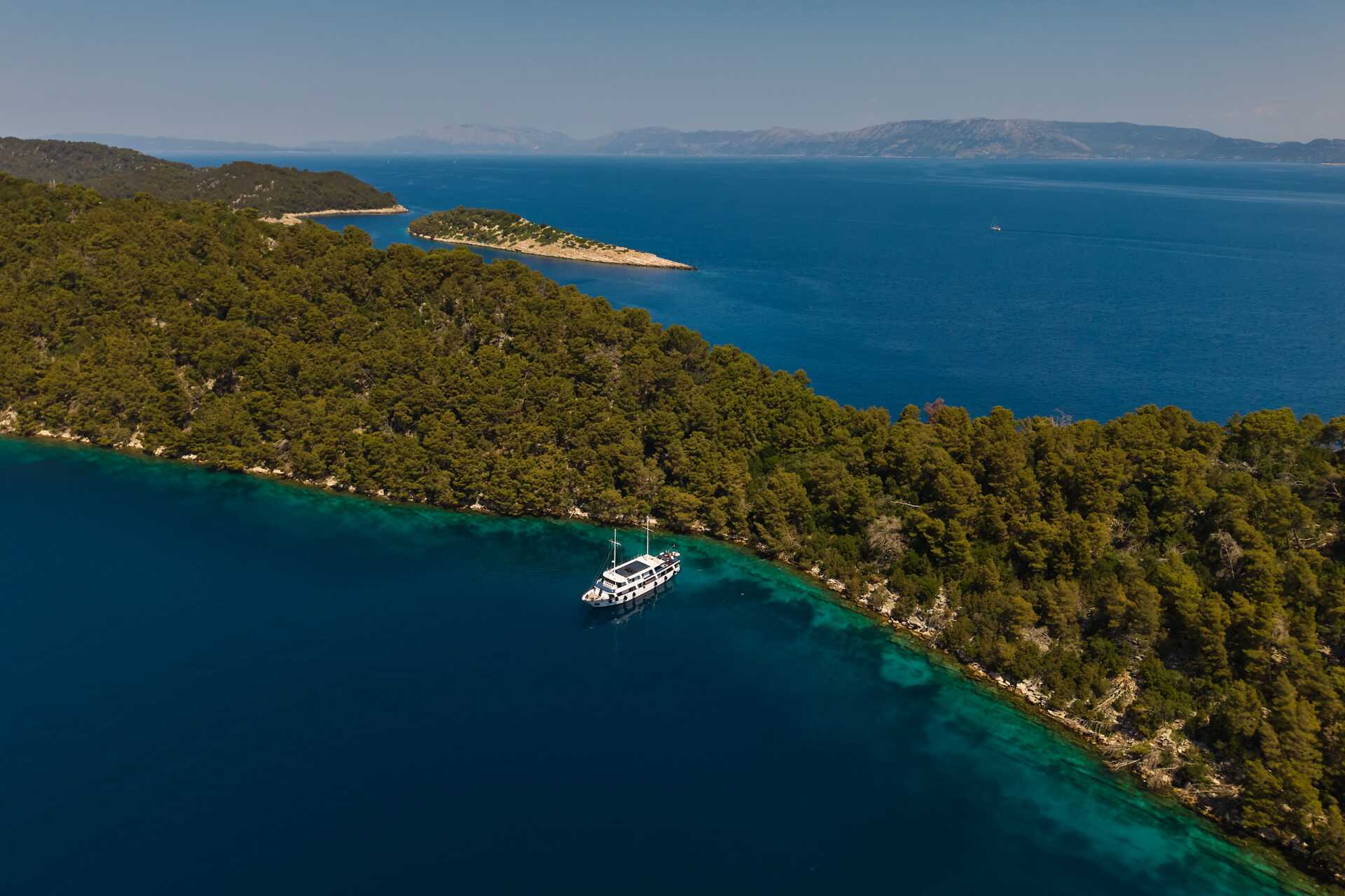 Vi seiler langs sørkysten av Korčula og stopper i en av de mange buktene for et deilig bad, før vi fortsetter mot neste havn, Pomena eller Polače på øya Mljet. En del av øya er en nasjonalpark, med to saltvannsjøer forbundet med havet via en smal kanal. I den større innsjøen er det en liten øy med et tidligere kloster. Gå ikke glipp av sjansen til å besøke nasjonalparken (inngangsbillett inkludert båttur til klosterøya, 15–25 euro avhengig av sesong, betales på plas). Vi anbefaler en dukkert i saltvannssjøene der temperaturen alltid er cirka 2 grader høyere enn i havet. Overnatting i Pomena eller Polače.