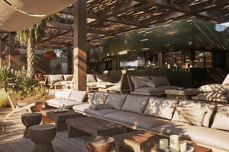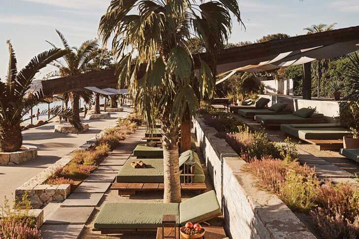 På stranden ligger to strandklubber, Gooshter og Zhega. Disse må bestilles på forhånd og er mot avgift. Hvis du bestiller en solseng på en av beach clubene og betaler 55 euro per dag, får du en kreditt på samme beløp som kan brukes til mat og drikke i den respektive beach club samme dag.