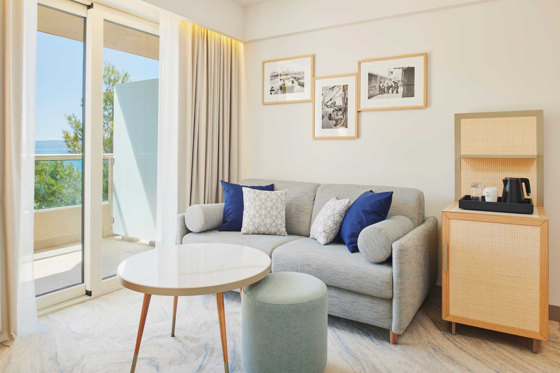 Deluxerom med balkong, noen med havutsikt. En dobbeltseng eller to enkeltsenger. Mulig med ekstrasenger i sovesofa. Wifi, luftkondisjonering og safe inkludert. Lite kjøleskap, som kan fylles som minibar på forespørsel, og er deretter mot avgift. Vannkoker samt kaffe og te. TV. Vegg-til-vegg-teppe. Badekåper og tøfler. Hårføner. Bad med badekar og dusj, noen rom har også separat dusj og wc. Rengjøring 7 ggr/uke.
