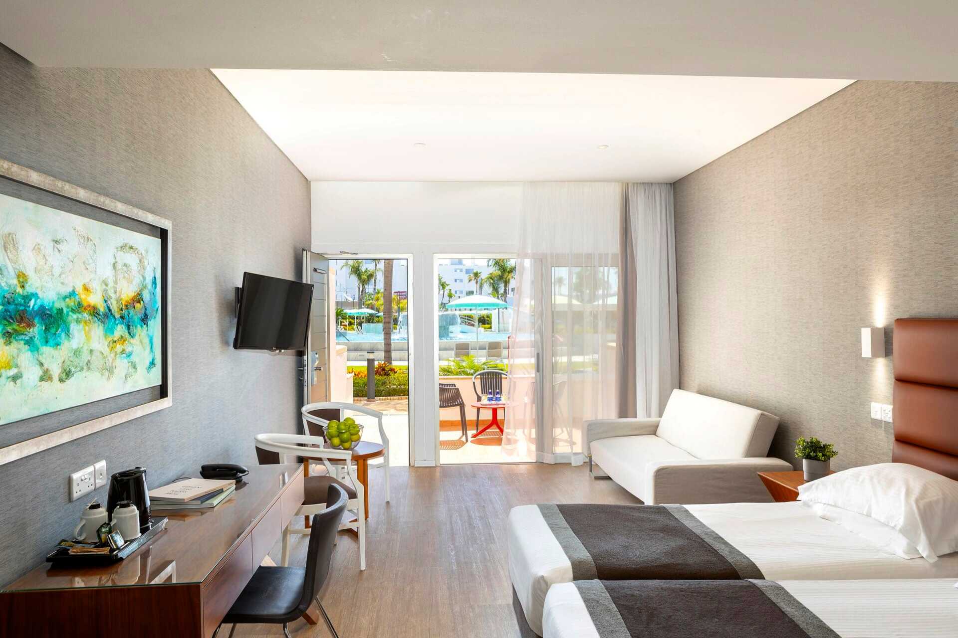 Familierom med balkong. En dobbeltseng og to enkeltsenger. Mulig med ekstrasenger i ordinære senger. Wifi, luftkondisjonering og safe inkludert. Minibar. Vannkoker samt kaffe og te. TV. Hårføner. Dusj og wc. Rengjøring 7 ggr/uke. Barn under 2 år regnes inn i maksantallet i rommet.