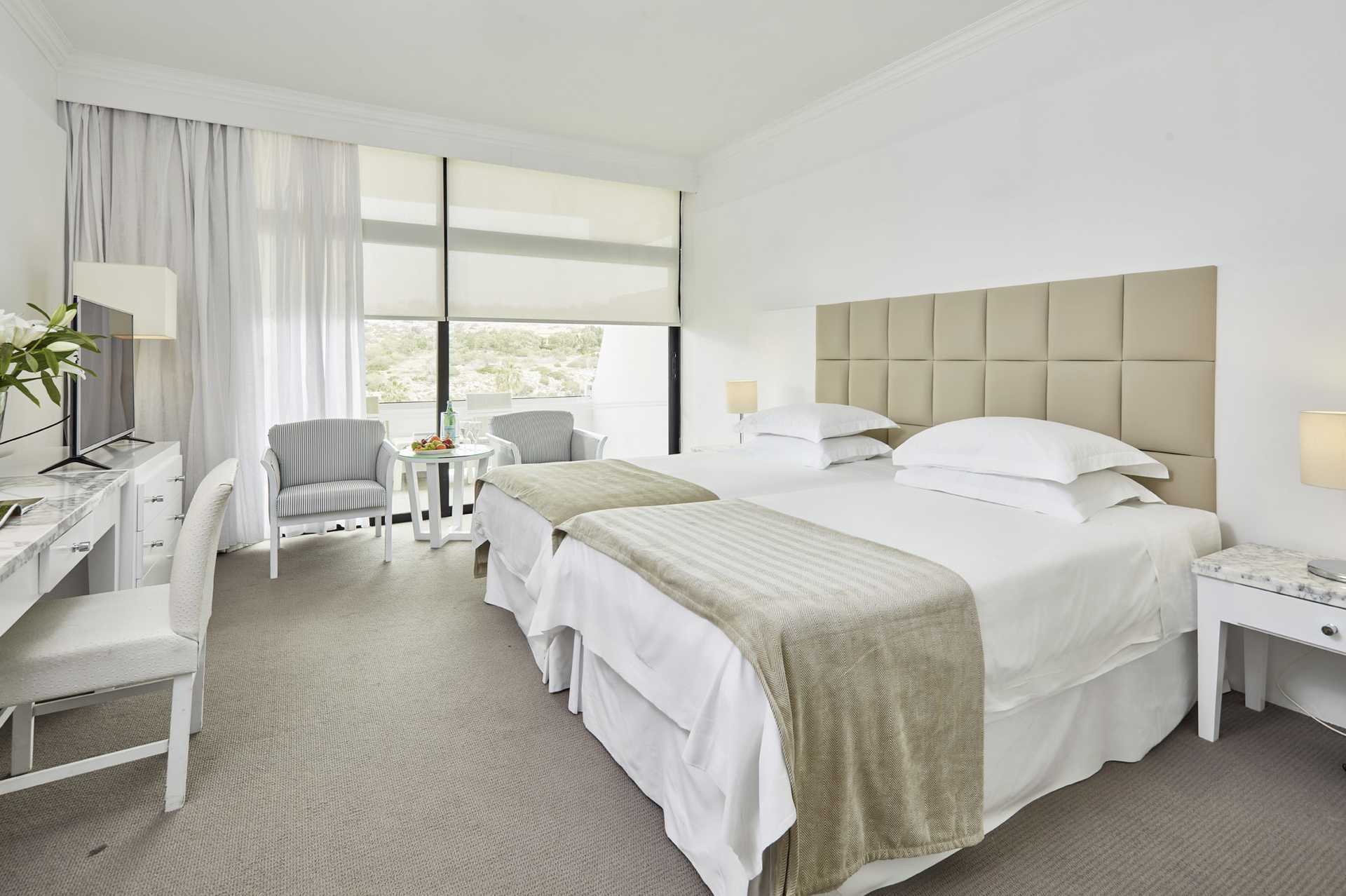 Dobbeltrom med balkong, noen med havutsikt eller begrenset havutsikt. En dobbeltseng eller to enkeltsenger. Minibar. Vannkoker samt kaffe og te. Wifi, luftkondisjonering og safe inkludert. TV. Hårføner. Badekåper og tøfler Badekar og dusj samt wc. Rengjøring 7 ggr/uke.