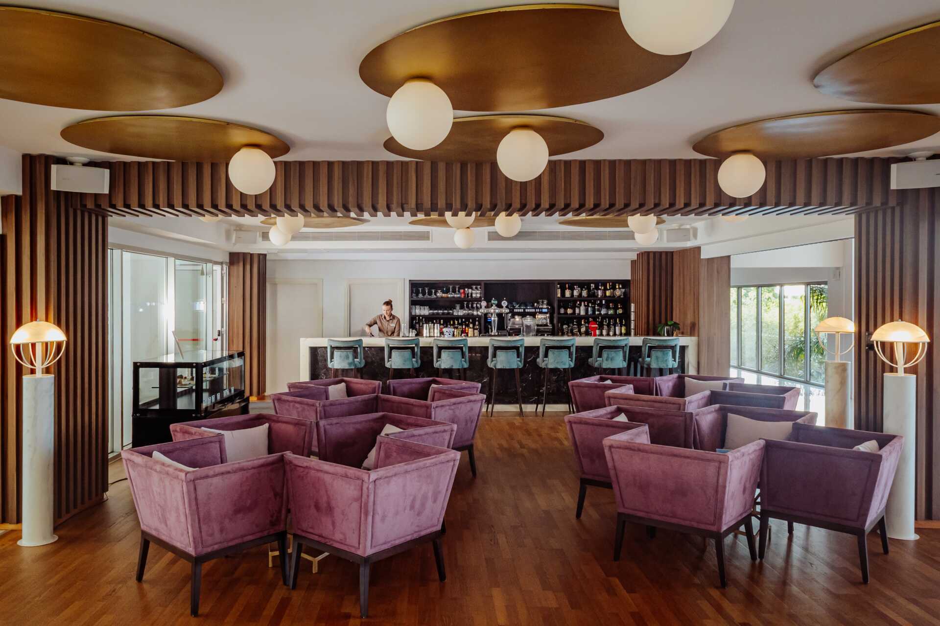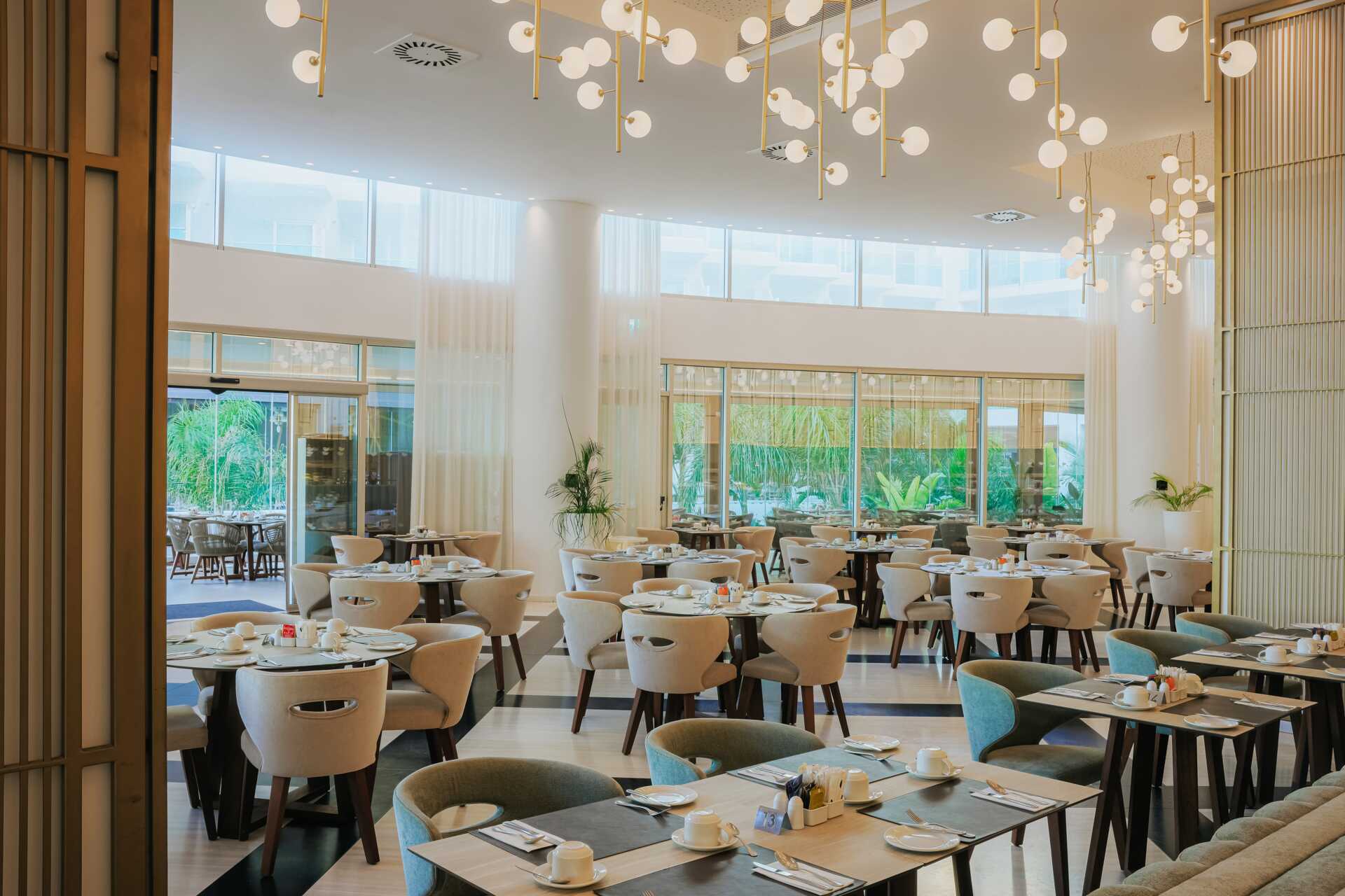 The Mediterranean Restaurant er en bufférestaurant som serverer generøse bufféer til frokost og middag. Du kan spise lunsj og middag i Theros Bistro og her serveres alt fra salater, hamburgere, wraps, pasta til pizza – på kveldstid kan du spise grillmat. Det finnes også Nikkei, en à la carte-restaurant med japanske og peruanske retter, åpen for middag (stengt mandager og onsdager). Bordreservasjon er nødvendig minst én dag i forveien i à la carte-restaurantene. Bar og poolbar samt sigarbar.