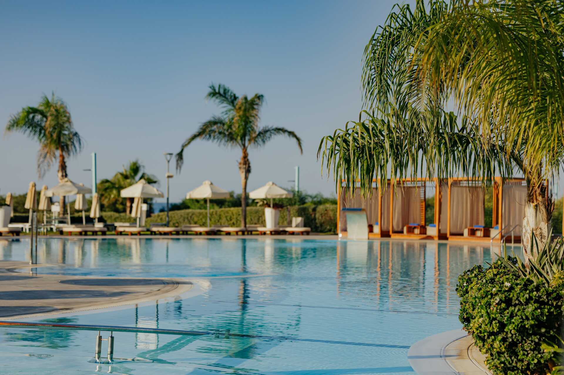 NissiBlu Beach Resort tilbyr et stort og deilig bassengområde med et stort basseng og et barnebasseng med solskjerming. Solsenger og parasoller samt basseng- og strandhåndklær er inkludert. Balisenger mot avgift. Det finnes også et innendørsbasseng. Diagonalt nedenfor hotellet ligger den populære Nissi Beach hvor det er et stort utvalg av vannsport, sandvolleyball samt garderober og toaletter.