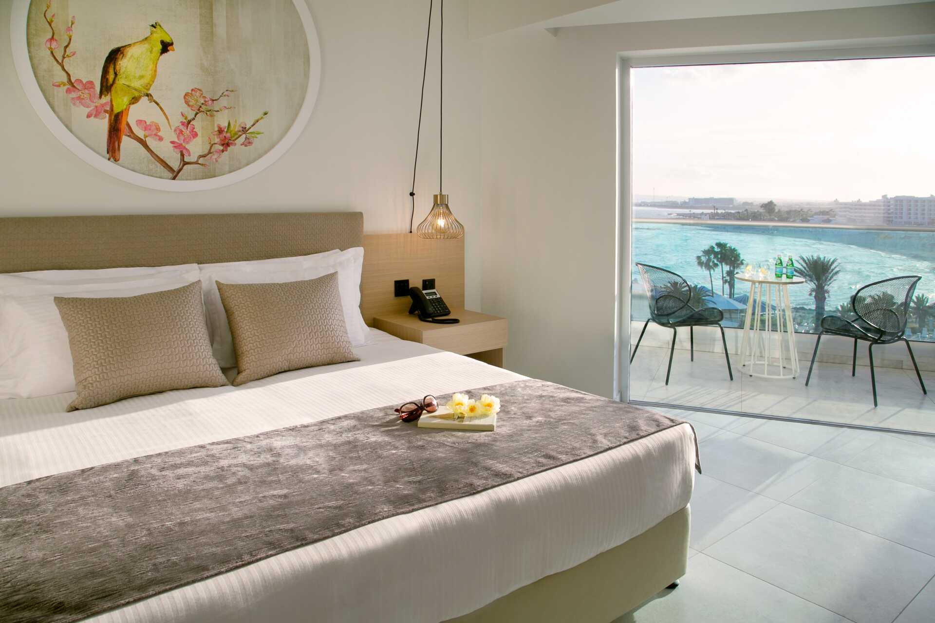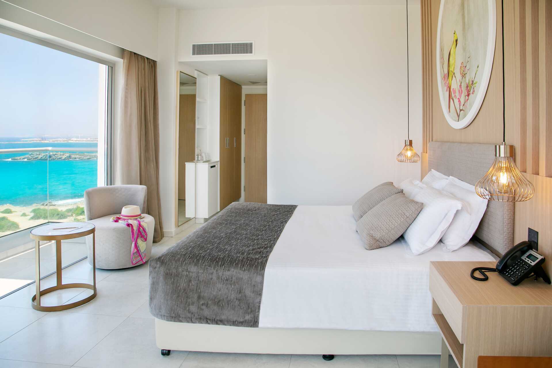 Juniorsuite med balkong og havutsikt. En dobbeltseng. Mulig med ekstraseng i sovesofa eller feltseng. Wifi, luftkondisjonering og safe inkludert. Minibar mot avgift. Vannkoker samt kaffe og te. Kaffemaskin. TV. Strykejern og strykebrett. Badekåper og tøfler. Hårføner. Badekar og wc. Rengjøring 7 ggr/uke. Barn under 2 år regnes inn i maksantallet i rommet.