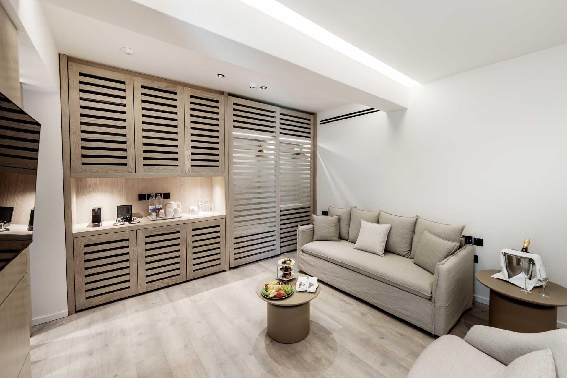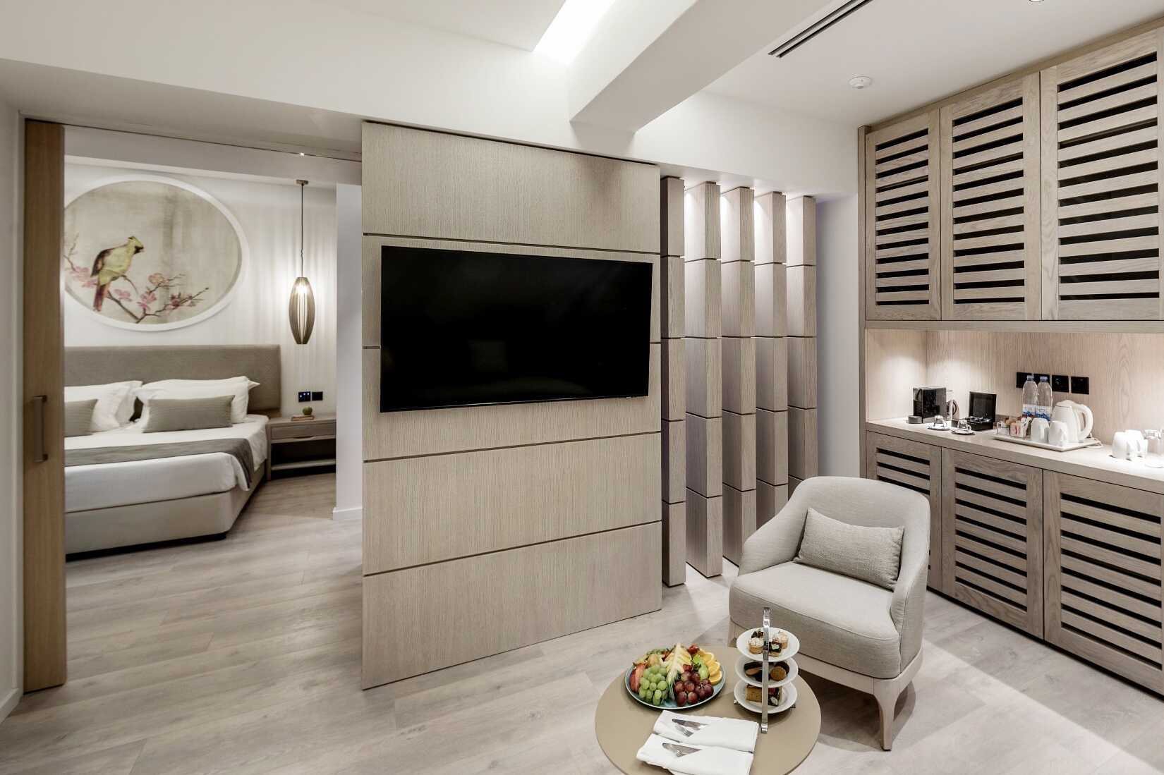 Juniorsuite Premium med balkong og begrenset havutsikt. Juniorsuiten består av et soverom og en stue med skyvedør mellom rommene. En dobbeltseng. Mulig med ekstraseng i sovesofa. Wifi, luftkondisjonering og safe inkludert. Minibar mot avgift. Vannkoker samt kaffe og te. TV i hvert rom. Badekåper og tøfler. Hårføner. Bad med badekar og wc og separat wc. Rengjøring 7 ggr/uke. Barn under 2 år regnes inn i maksantallet i rommet.