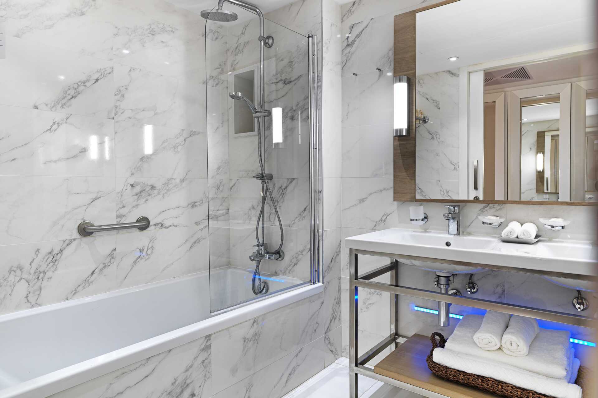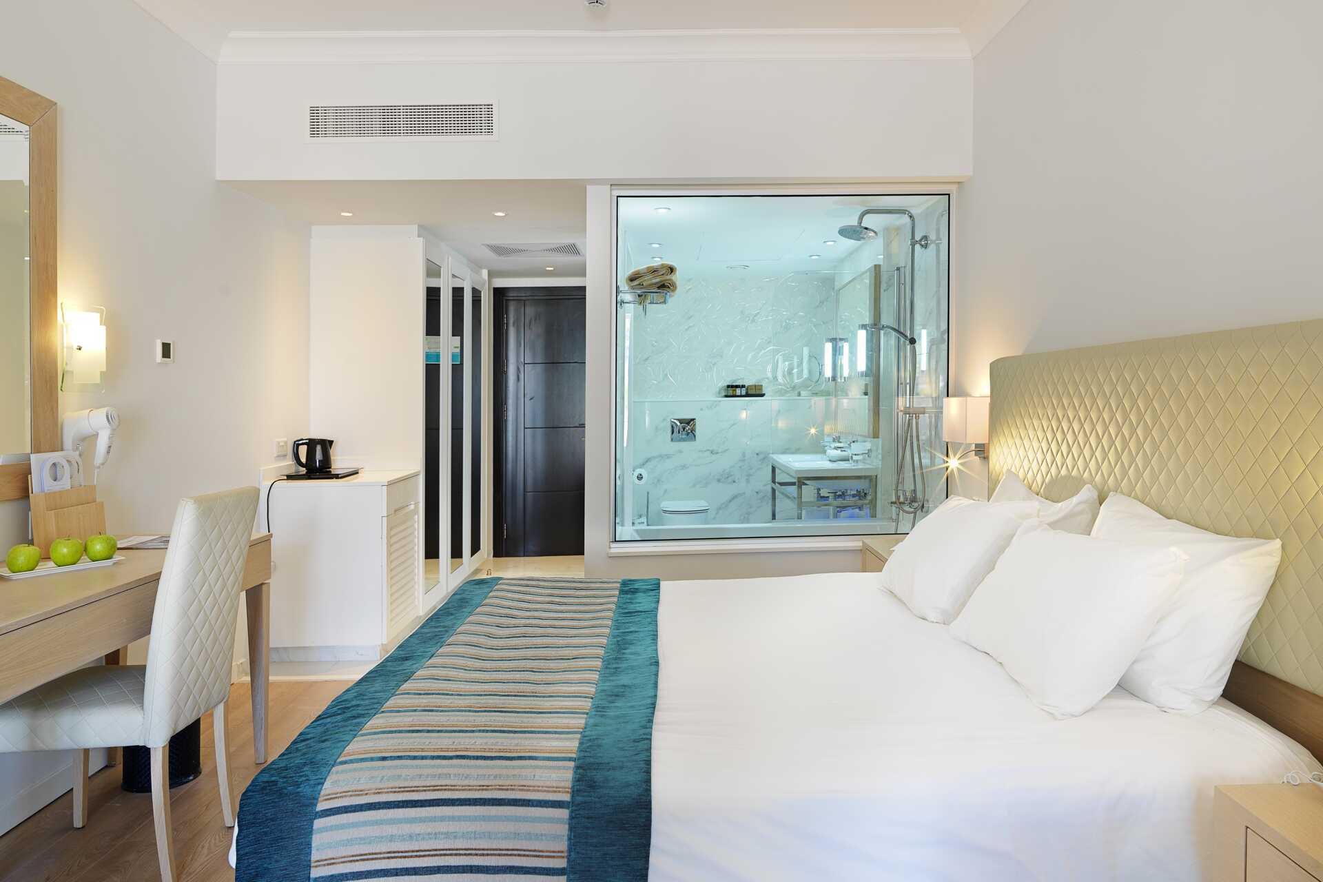 Superiorsuite med balkong og havutsikt. En dobbeltseng eller to enkeltsenger. Wifi, luftkondisjonering og safe inkludert. Kjøleskap. En flaske vann er inkludert - etterfylles daglig. Vannkoker samt kaffe og te. TV. Badekåper og tøfler Hårføner. Badekar og wc. Rengjøring 7 ggr/uke.