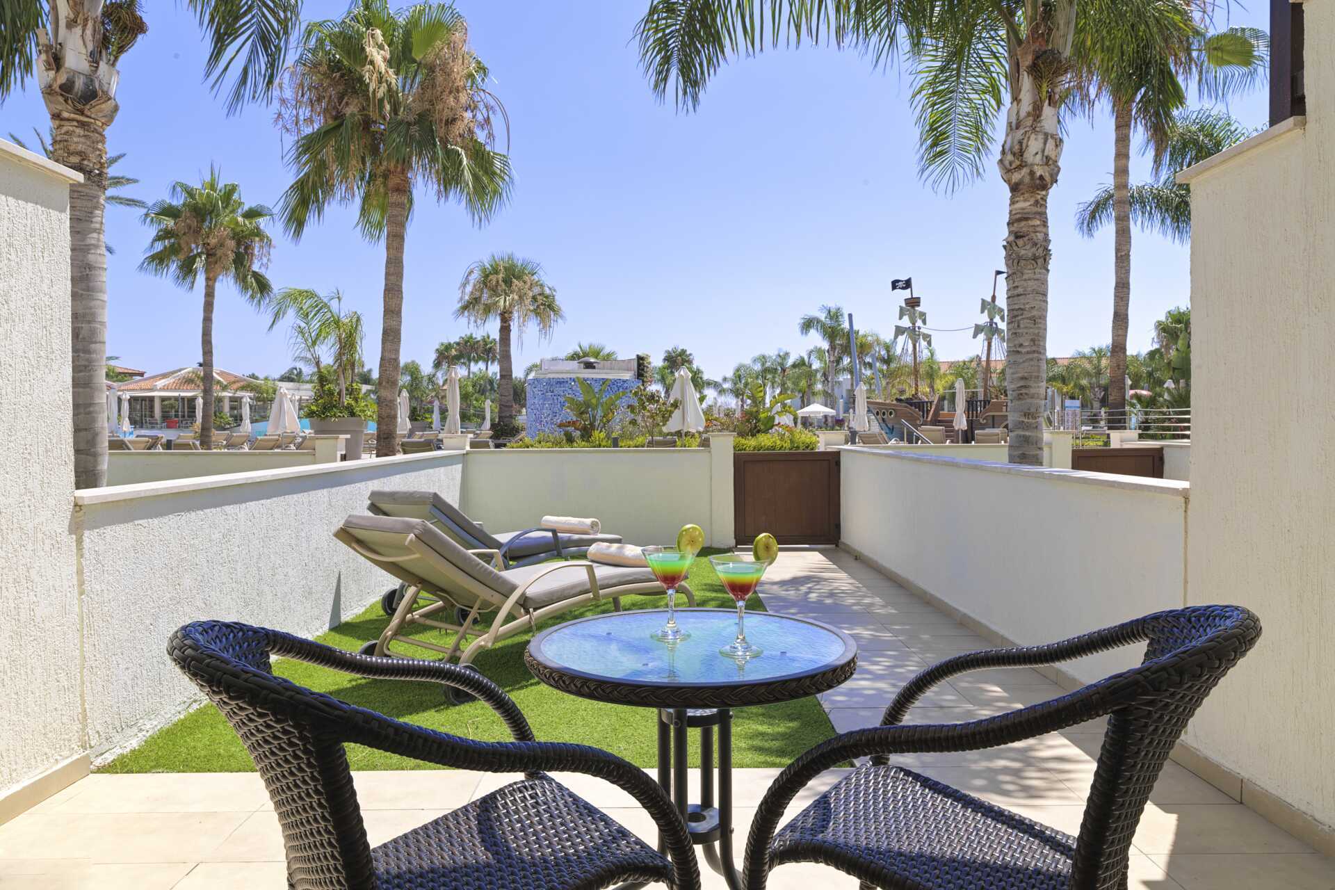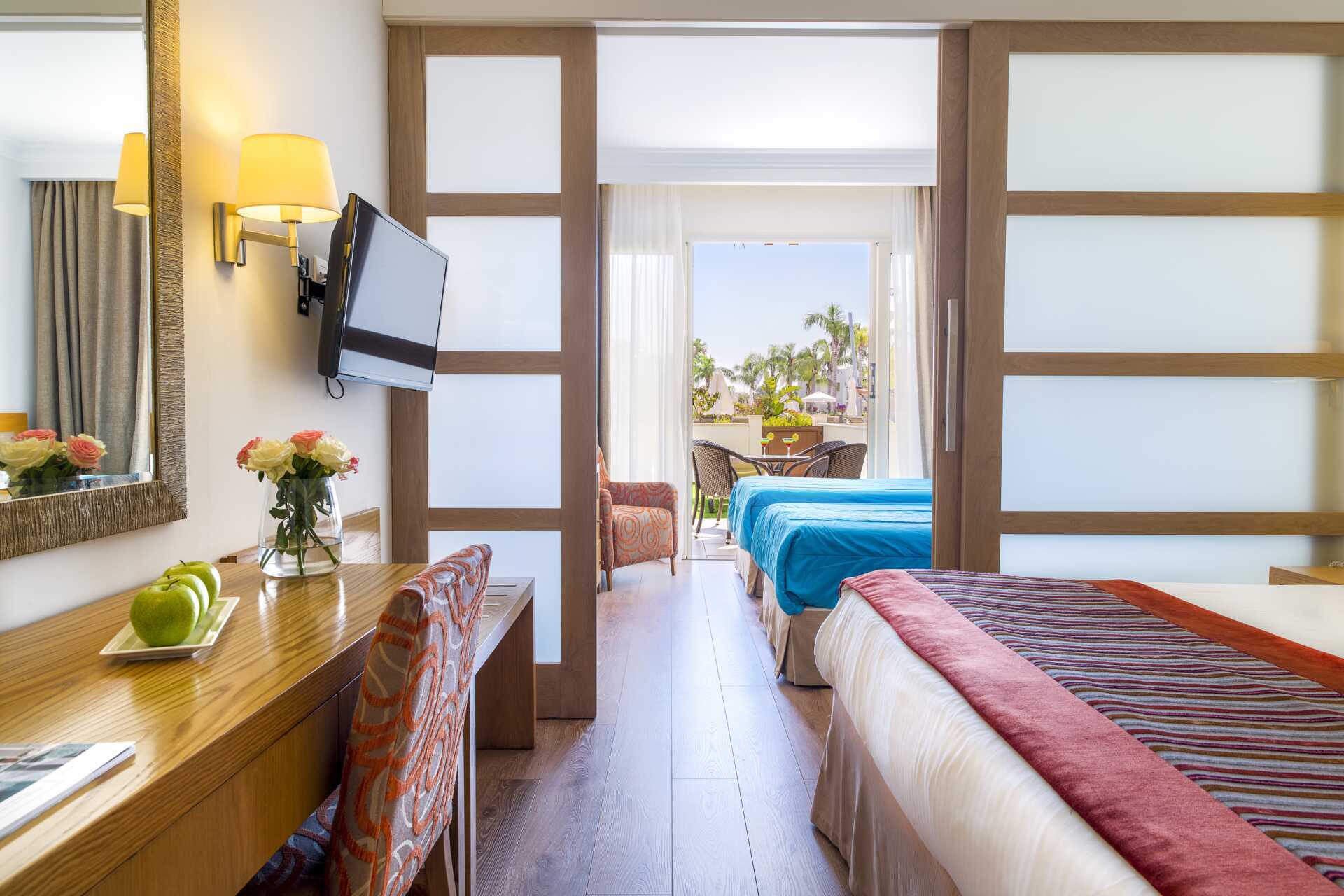 Familiesuite med balkong. Familiesuiten består av to soverom atskilt med en skyvedør i frostet glass. En dobbeltseng. Mulig med ekstrasenger i to enkeltsenger eller i køyeseng. Wifi, luftkondisjonering og safe inkludert. Kjøleskap. En flaske vann er inkludert, etterfylles daglig. Vannkoker samt kaffe og te. TV. Badekåper og tøfler Hårføner. Badekar og wc. Rengjøring 7 ggr/uke. Barn under 2 år regnes inn i maksantallet i rommet.