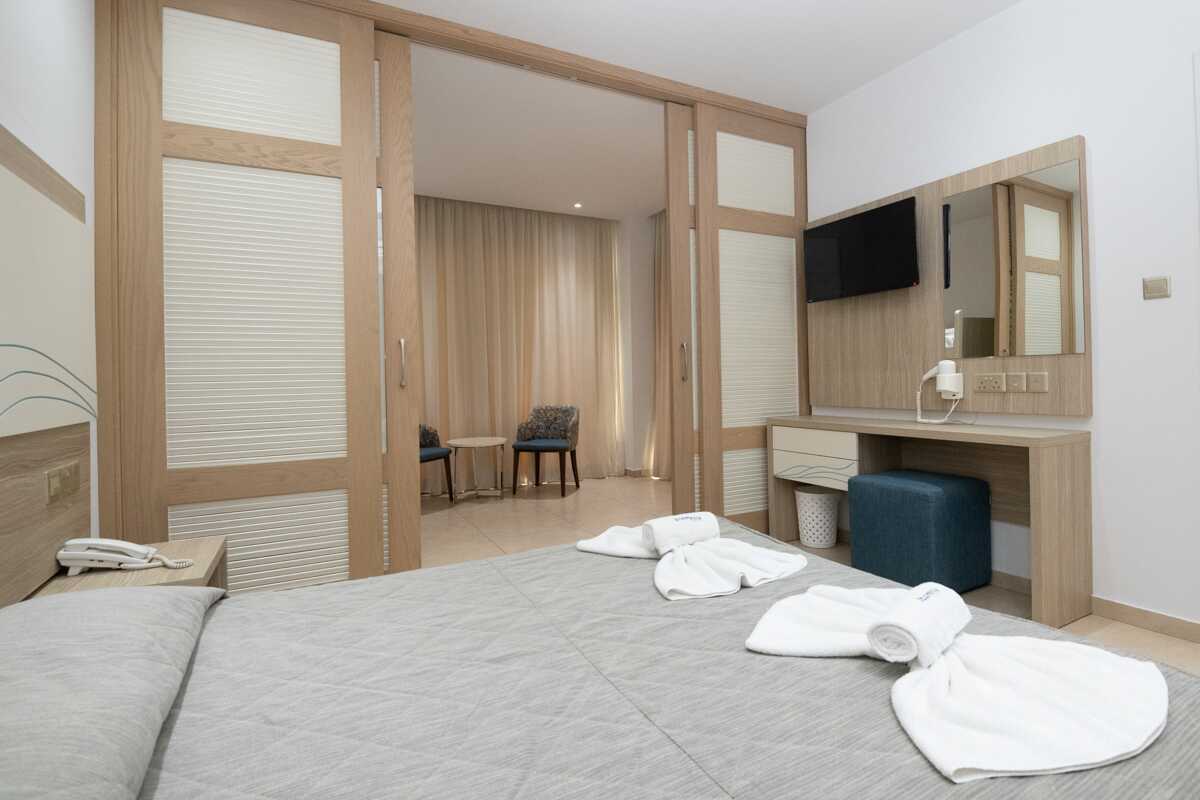 Superiorrom med balkong, noen med havutsikt og noen med begrenset havutsikt. En dobbeltseng eller to enkeltsenger. Mulig med ekstraseng i en sovesofa eller i en feltseng. Wifi og luftkondisjonering er inkludert. Safe mot avgift. Kjøleskap. Vannkoker samt kaffe og te. TV. Hårføner. Badekar eller dusj samt wc. Rengjøring 7 ggr/uke.